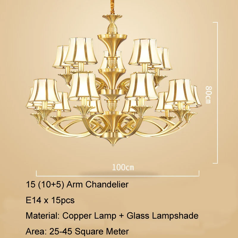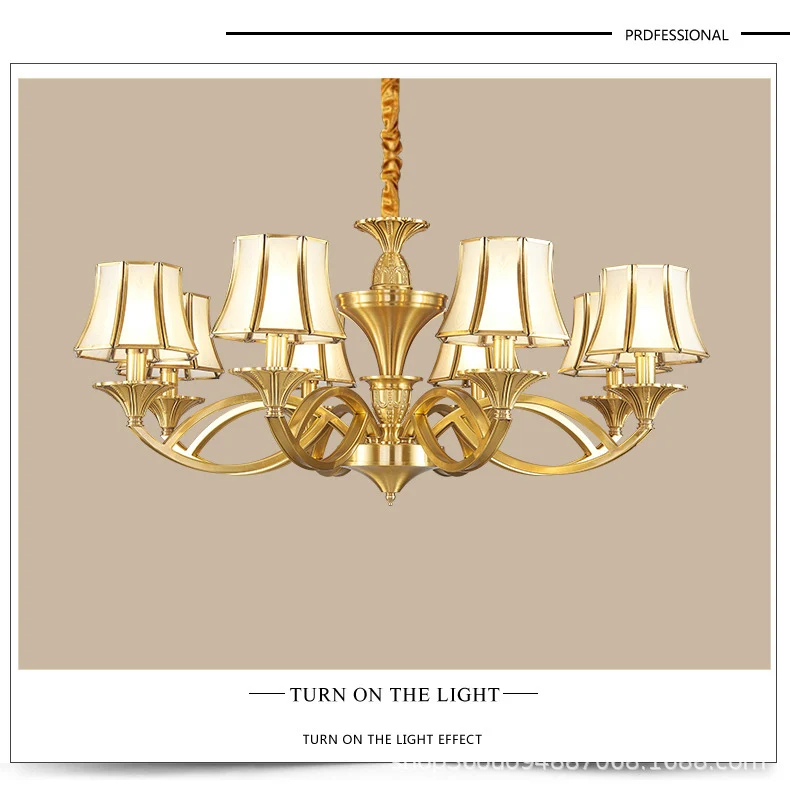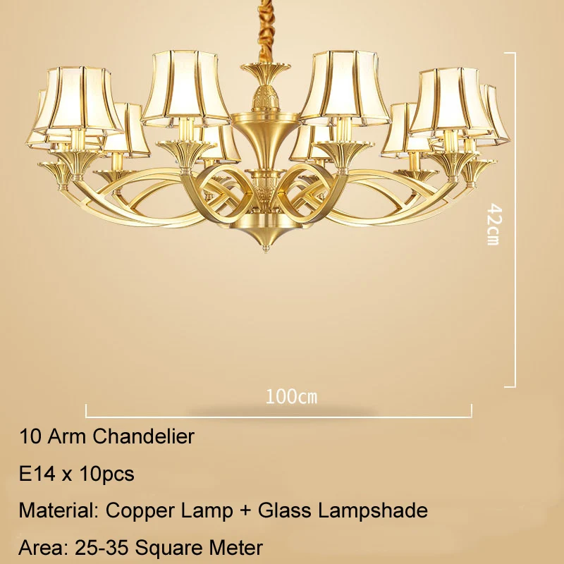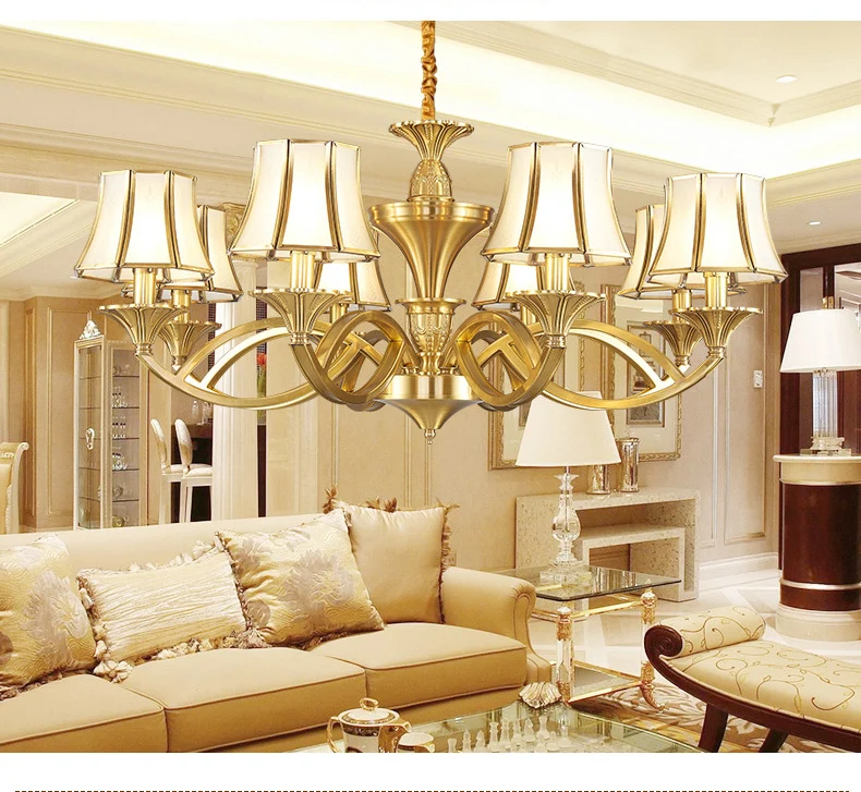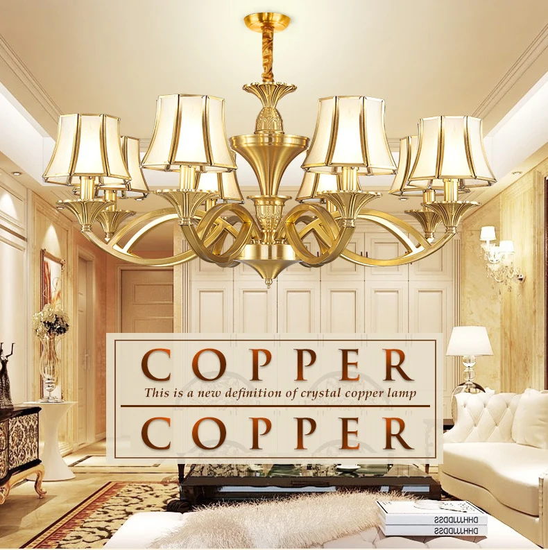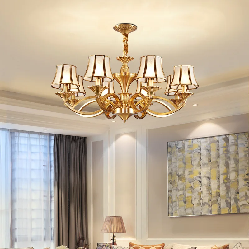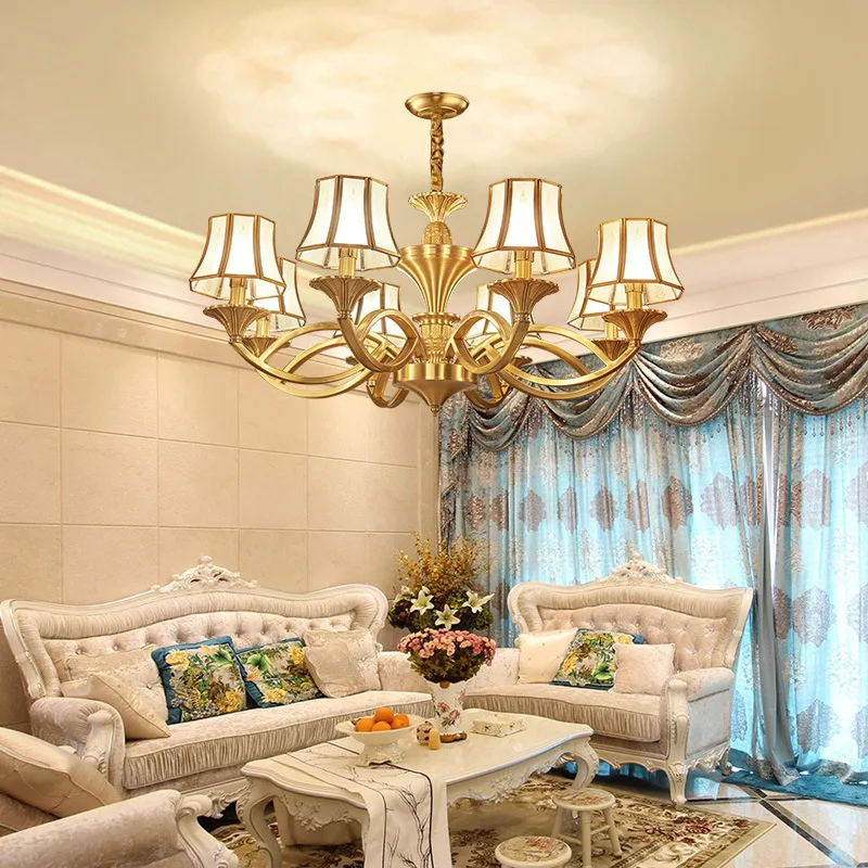 Медная люстра в европейском стиле для дома, гостиной, потолочные люстры, стеклянный абажур 3-15 Arm, освещение для отеля, ресторана, D57