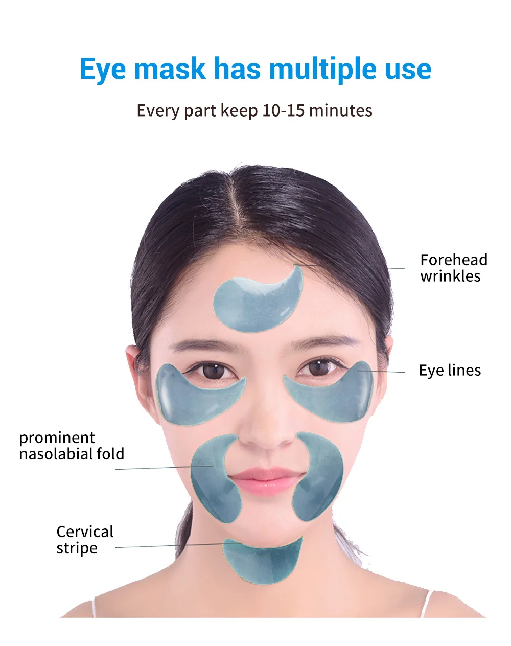 Маска для глаз имеет многократное использование Каждая часть держит 10-15 минут Лобовые морщины Глаза линий Ярких носогубной складки Шейки матки в полоску