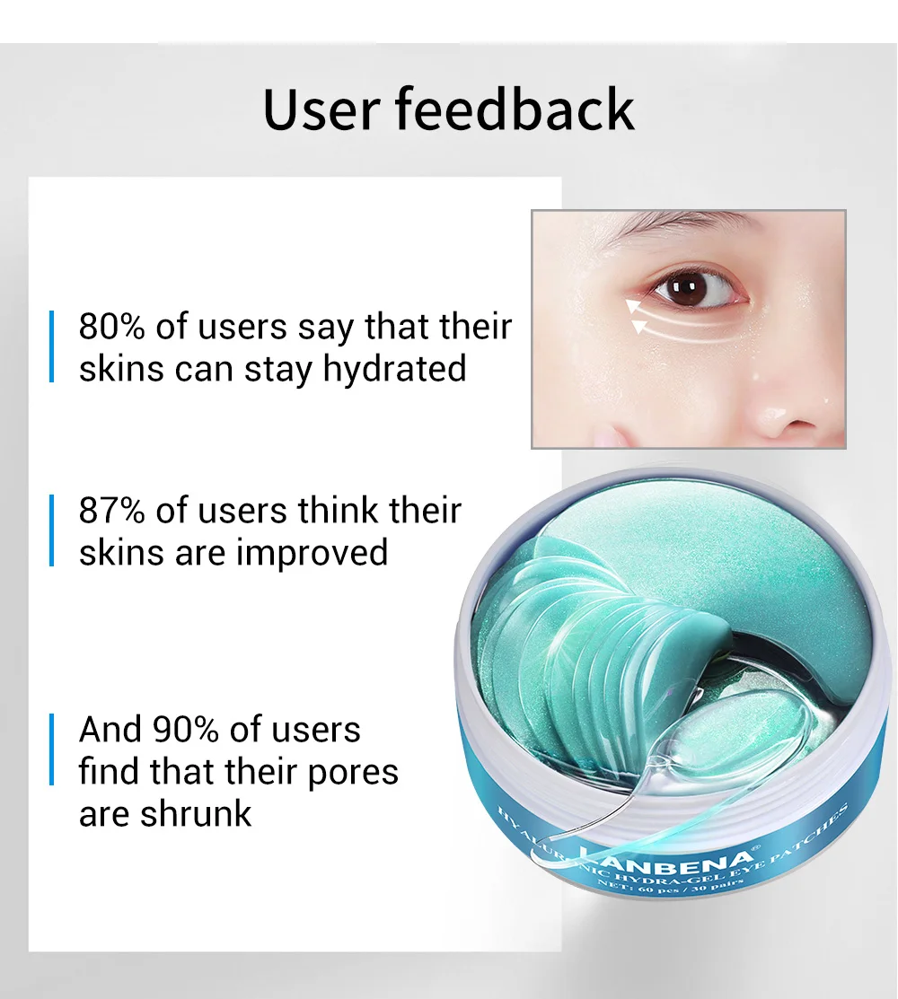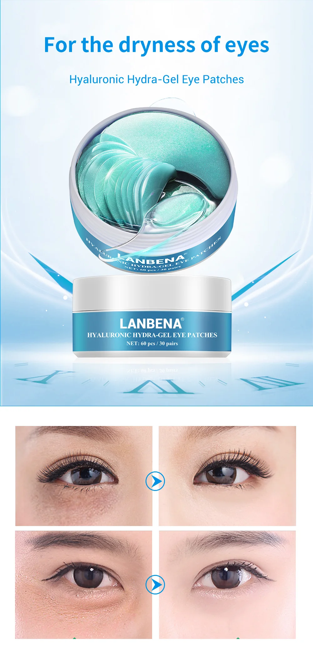 LANBENA гиалуроновая Гидра-гель патчи для глаз Ваши глаза могут чувствовать себя сухими и неудобными после многократного использования электронных продуктов Почему он должен заботиться о коже глаз? Проблема с глазами как только становится, но трудно восстановить. Необходимо немедленно позаботиться об этом, иначе проблемы с глазами станут серьезными.