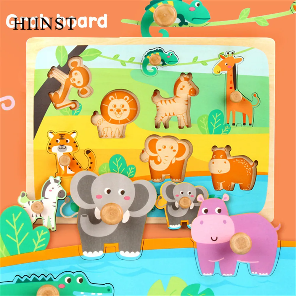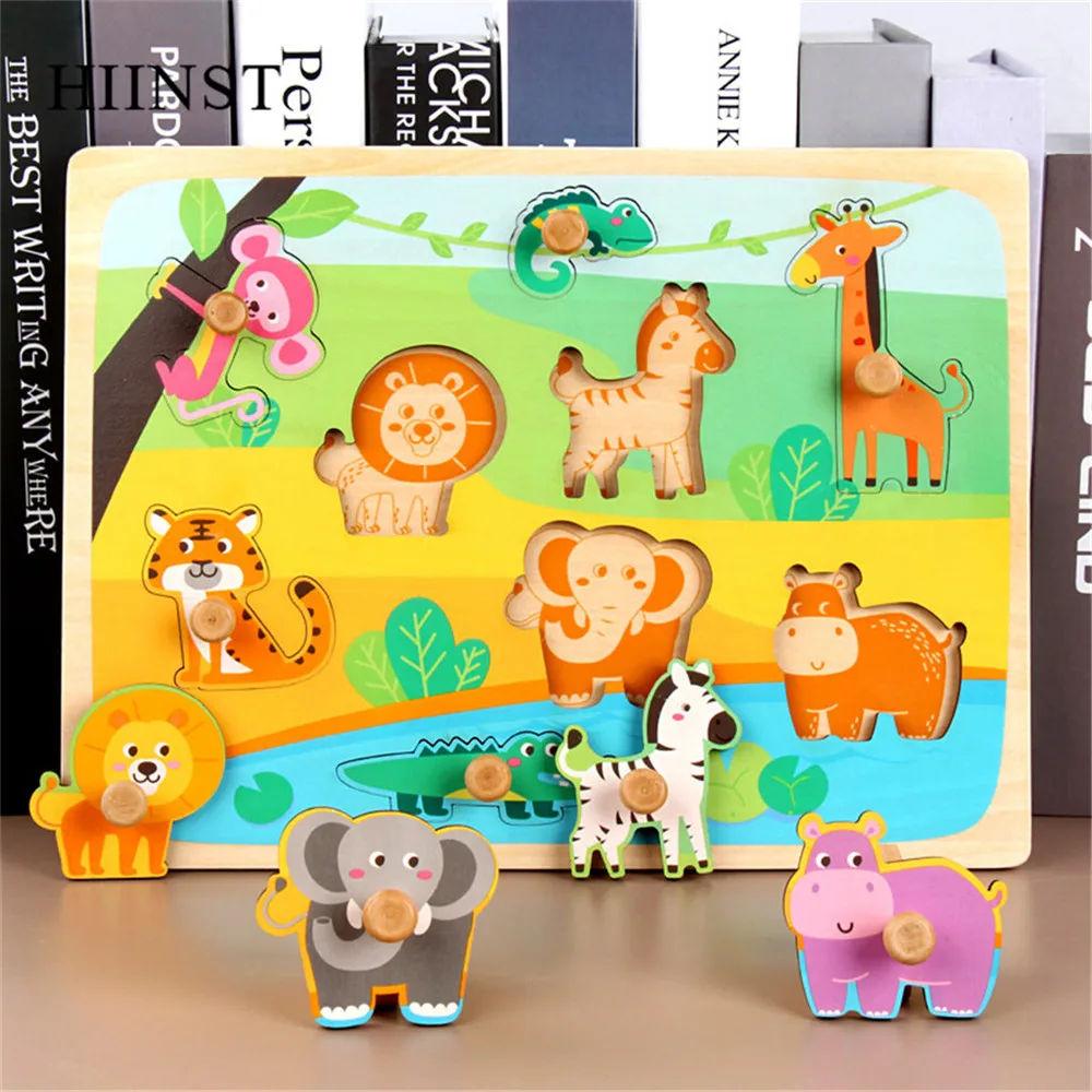 Пазл HIINST, игрушки для детей, деревянные пазлы для транспортировки животных, детские развивающие Игрушки для раннего развития