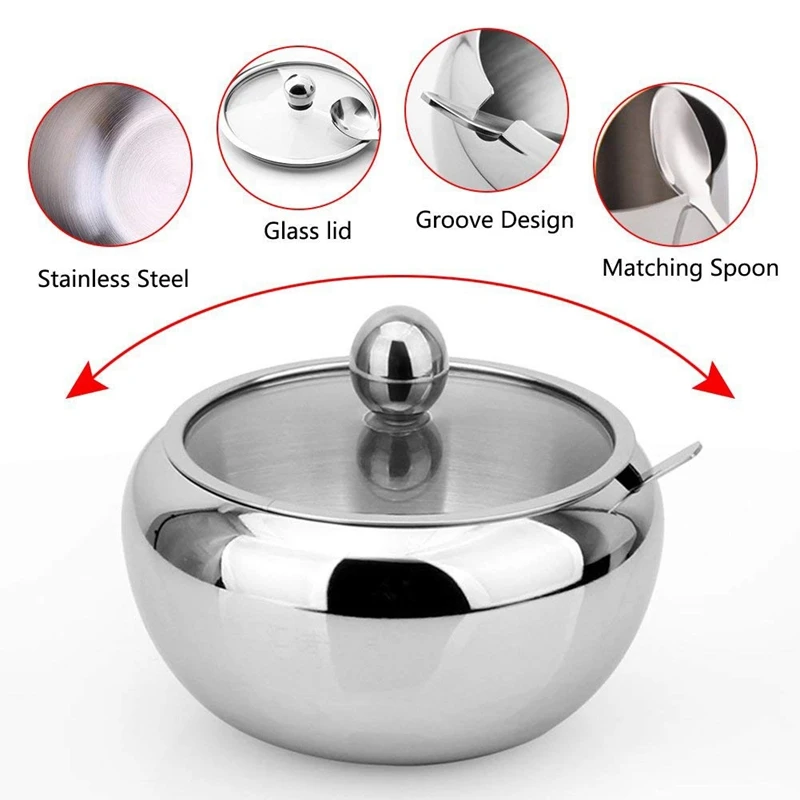 Добавьте сахарницу из нержавеющей стали к обеденному столу. Наслаждайтесь кофе или молоком с ложкой сахара на завтрак, а затем начните солнечный день!