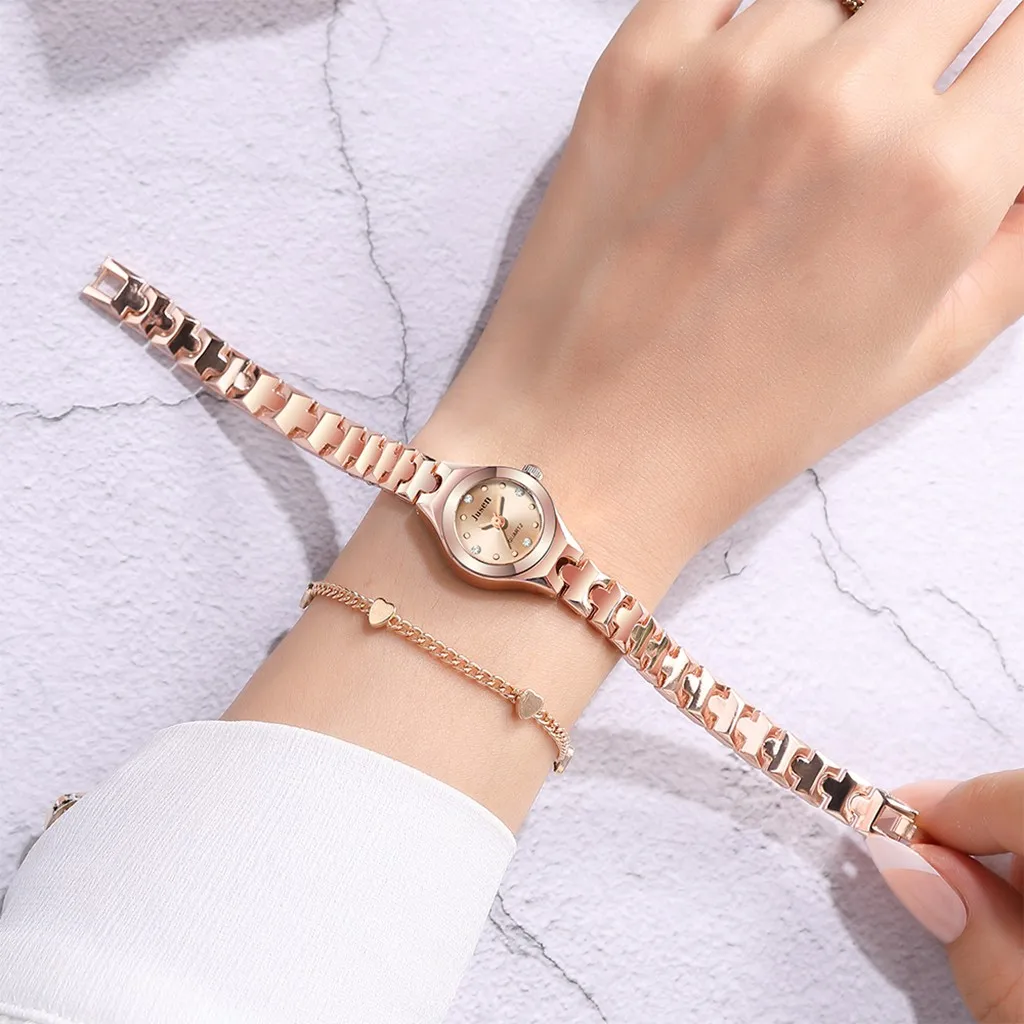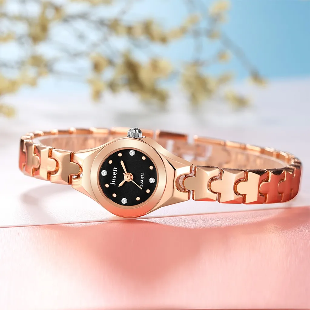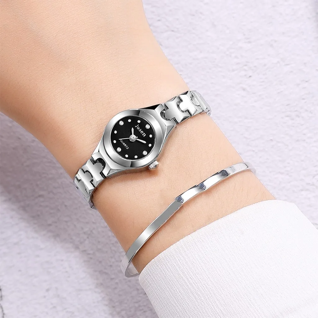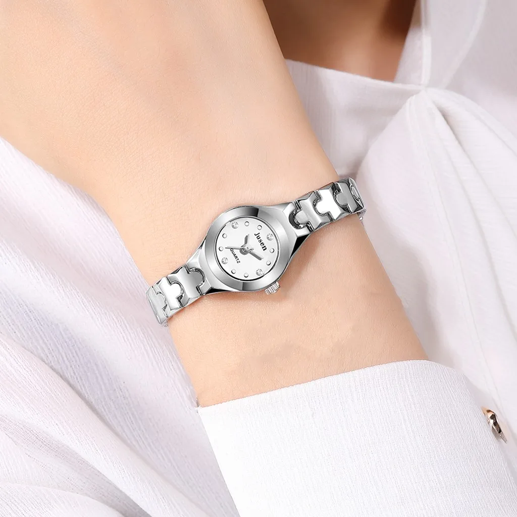 Модные Простые кварцевые часы из нержавеющей стали с инкрустированным бриллиантом