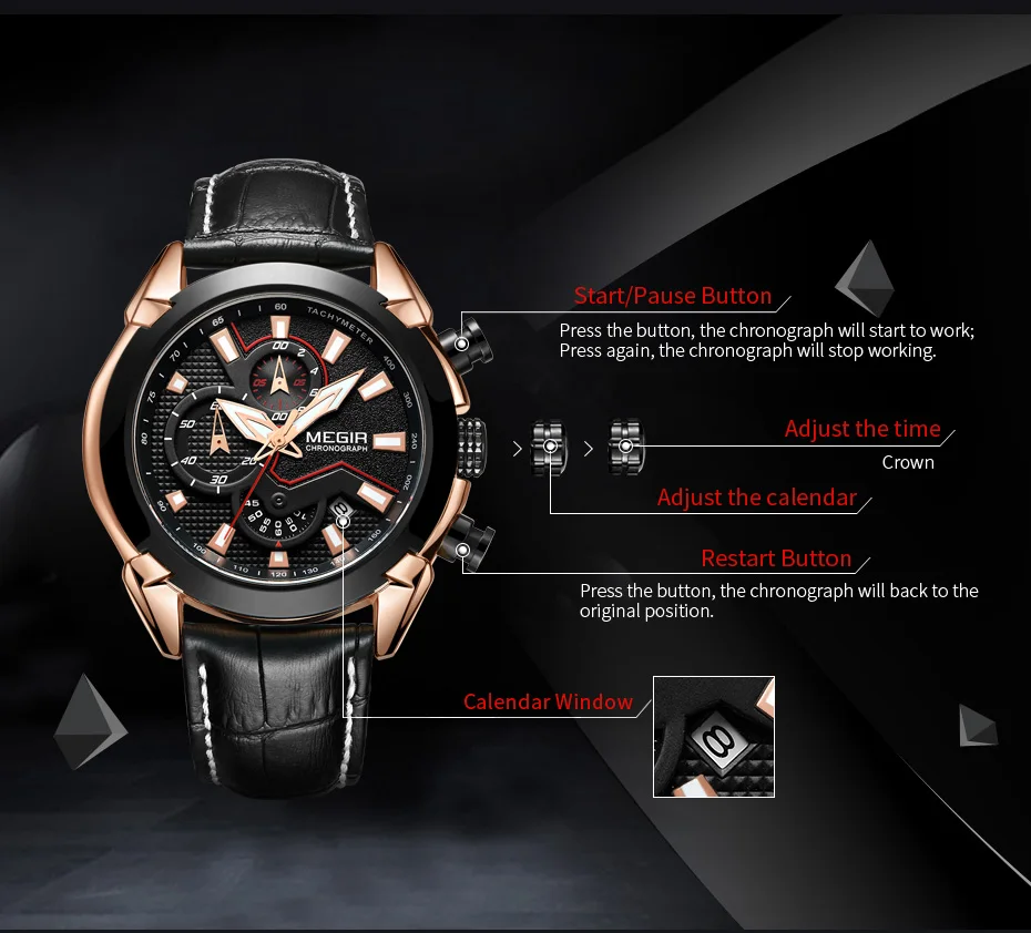 Характеристики: Товар: кварцевые наручные часы Тип: спортивные часы Материал корпуса: сплав Группа Длина: около 22,5 см Тип застежки: Пряжка Диаметр циферблата: около 48 мм Материал циферблата: Hardlex Чехол Форма: круглый Материал ремешка: кожа Ширина ремешка: около 24 мм Чехол Толщина: около 14 мм