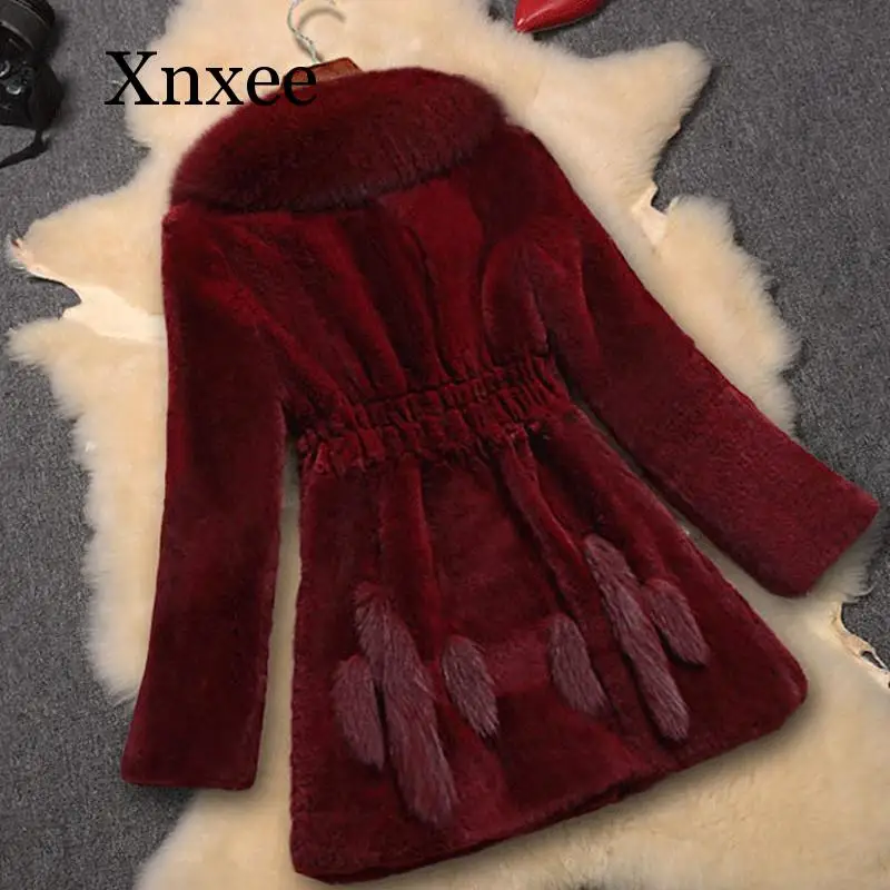 Женское длинное меховое пальто из искусственного меха енота и лисы на осень зиму