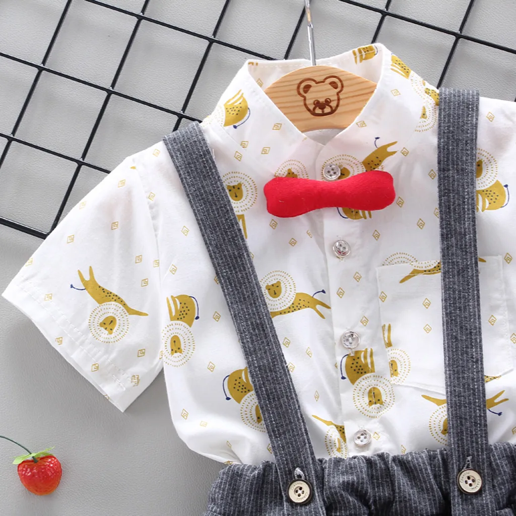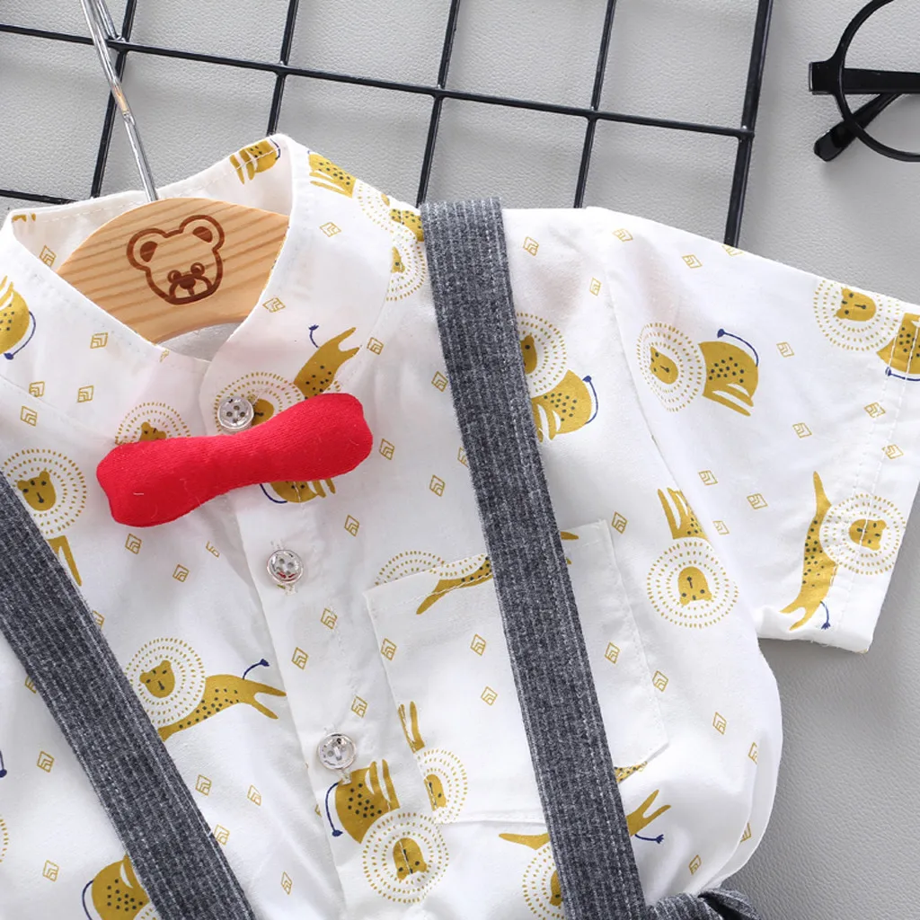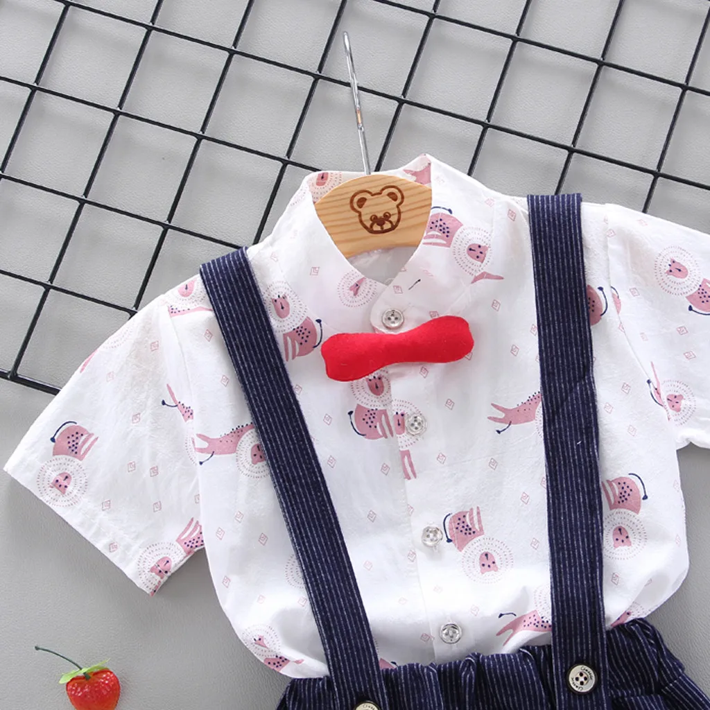 Футболка с героями мультфильмов для маленьких мальчиков 1-4 лет топ + штаны на бретелях, костюм с подтяжками, комплект