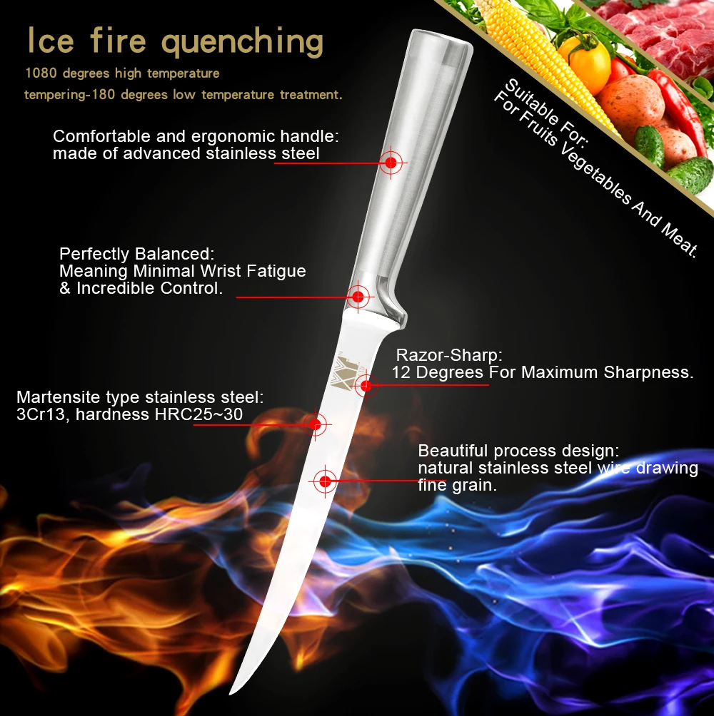 Спецификация: Материал лезвия: нержавеющая сталь Материал ручки: нержавеющая сталь Посылка включает в себя: 1*6 дюймов/7 дюймов/8 дюймов рыболовный нож 1. Удобная ручка: эргономичная ручка обеспечивает превосходный комфорт и не скользит даже ваши руки влажные. 2. Материал хорошего качества: изготовлен из нержавеющей стали, высокоуглеродистой, без пятен, устойчив к ржавчине, коррозии и обесцвечиванию. 3. Хорошее качество изготовления: Точная конструкция для лучшей прочности и долговечности. 4. Острый край: с острым краем, обеспечивает дополнительную стабильность, легкость хонинга, остроту, и он более эффективен при резке и измельчении. 5. Широкое использование: Идеально подходит для скрепления или филе рыбы. 6. Компактный и легкий: компактный дизайн для удобного хранения и переноски. 7. Идеальный подарок: Отличный подарок для домашних поваров, профессиональных поваров, кулинарных студентов и многого другого. 8. Легко чистить: просто мыть с мылом и сушить. Обратите внимание: 1. Из-за различных методов измерения размер и вес продукта могут иметь небольшую погрешность. 2. Пожалуйста, не помещайте в посудомоечную машину.