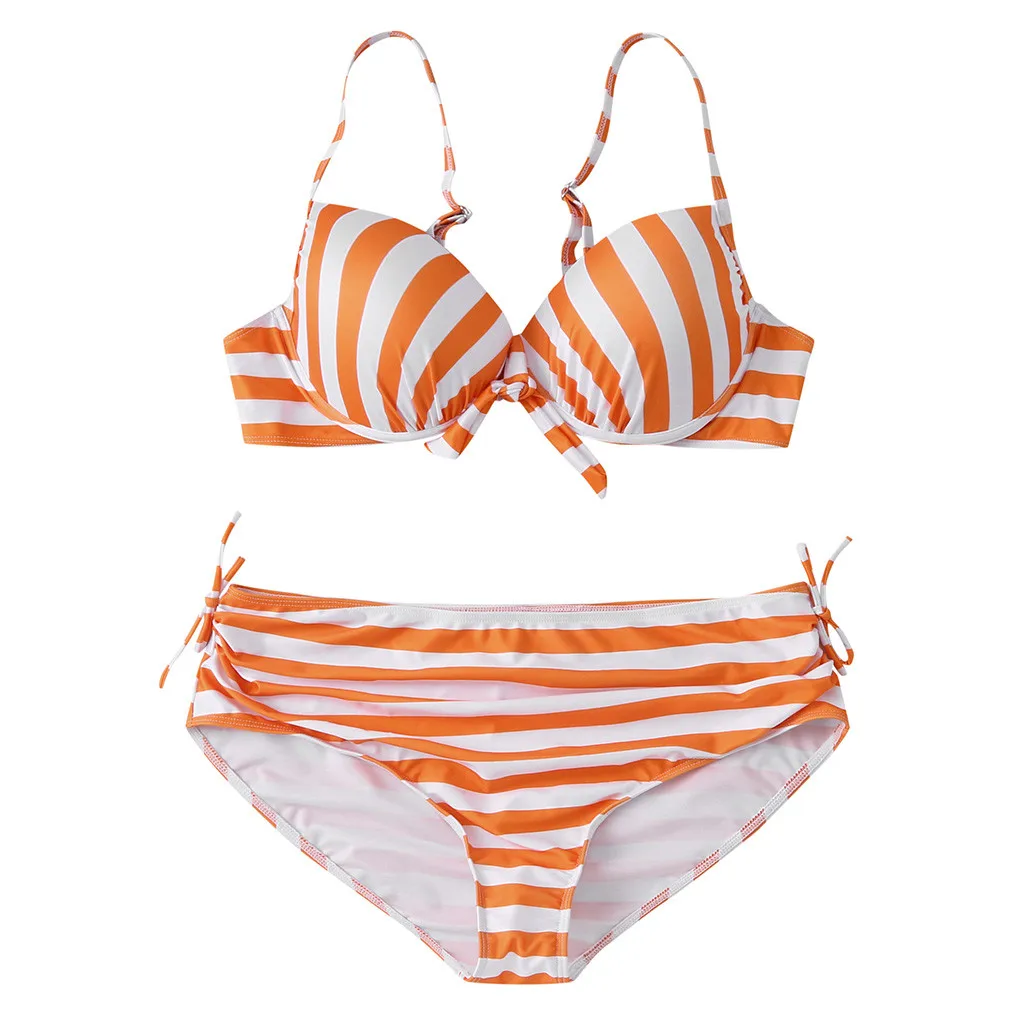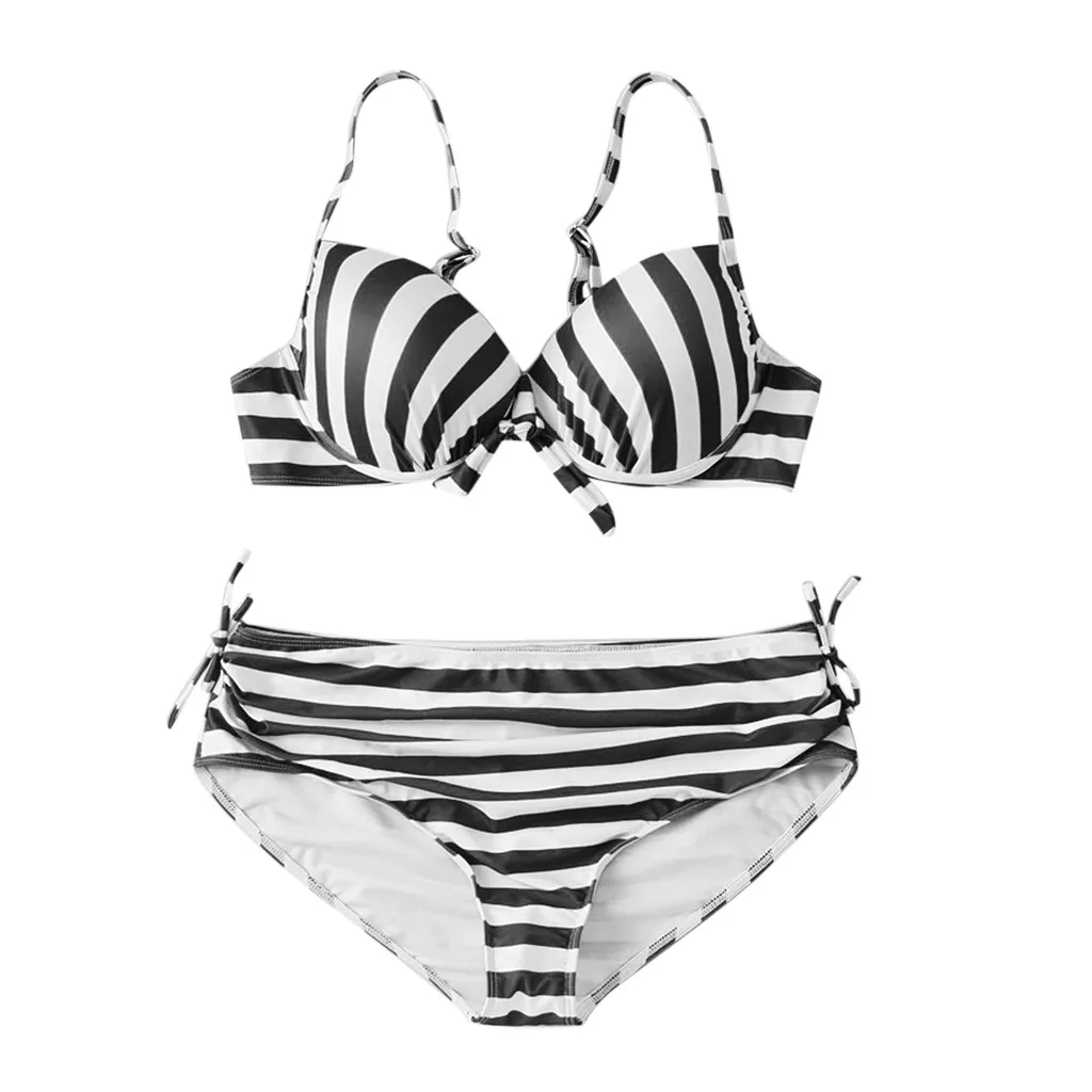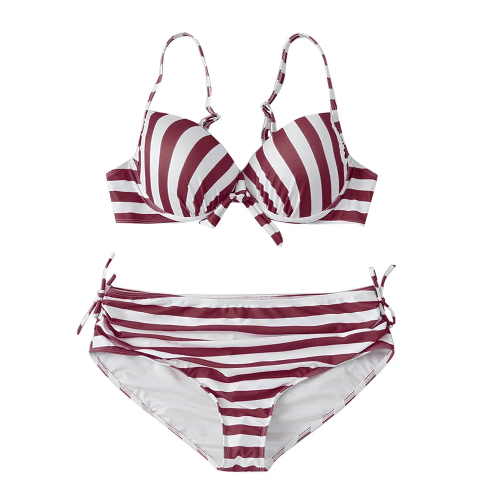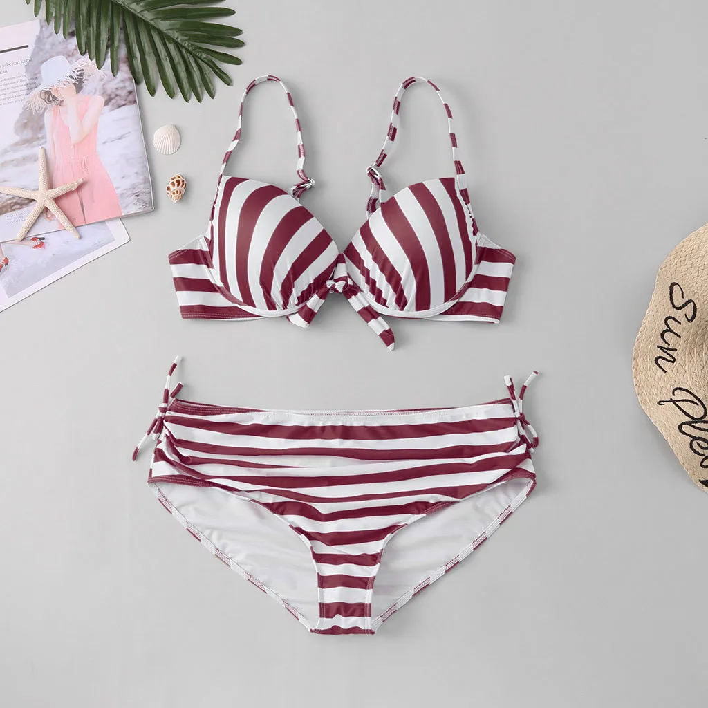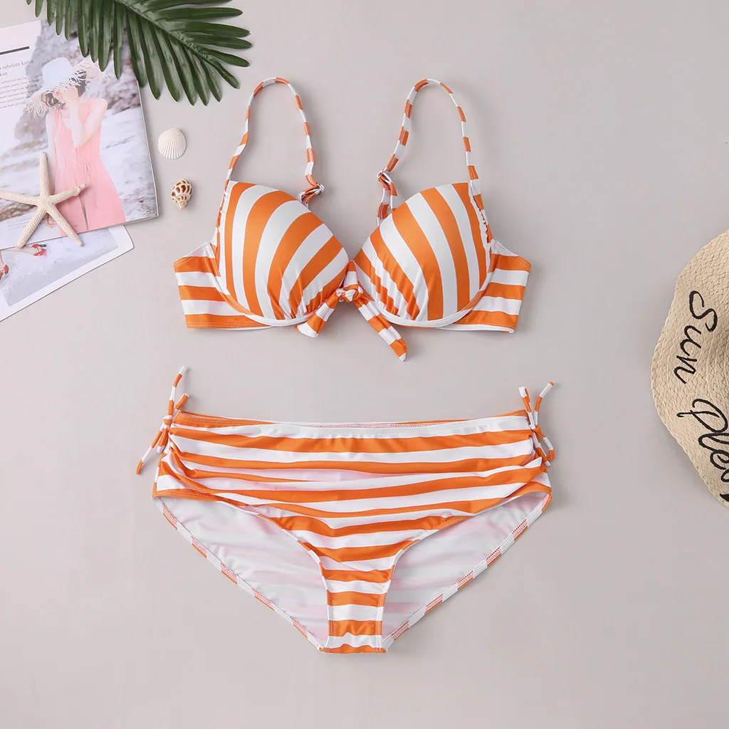 Женский комплект бикини с пуш-ап бюстгальтером и оборками, купальный костюм с низкой талией, купальный костюм