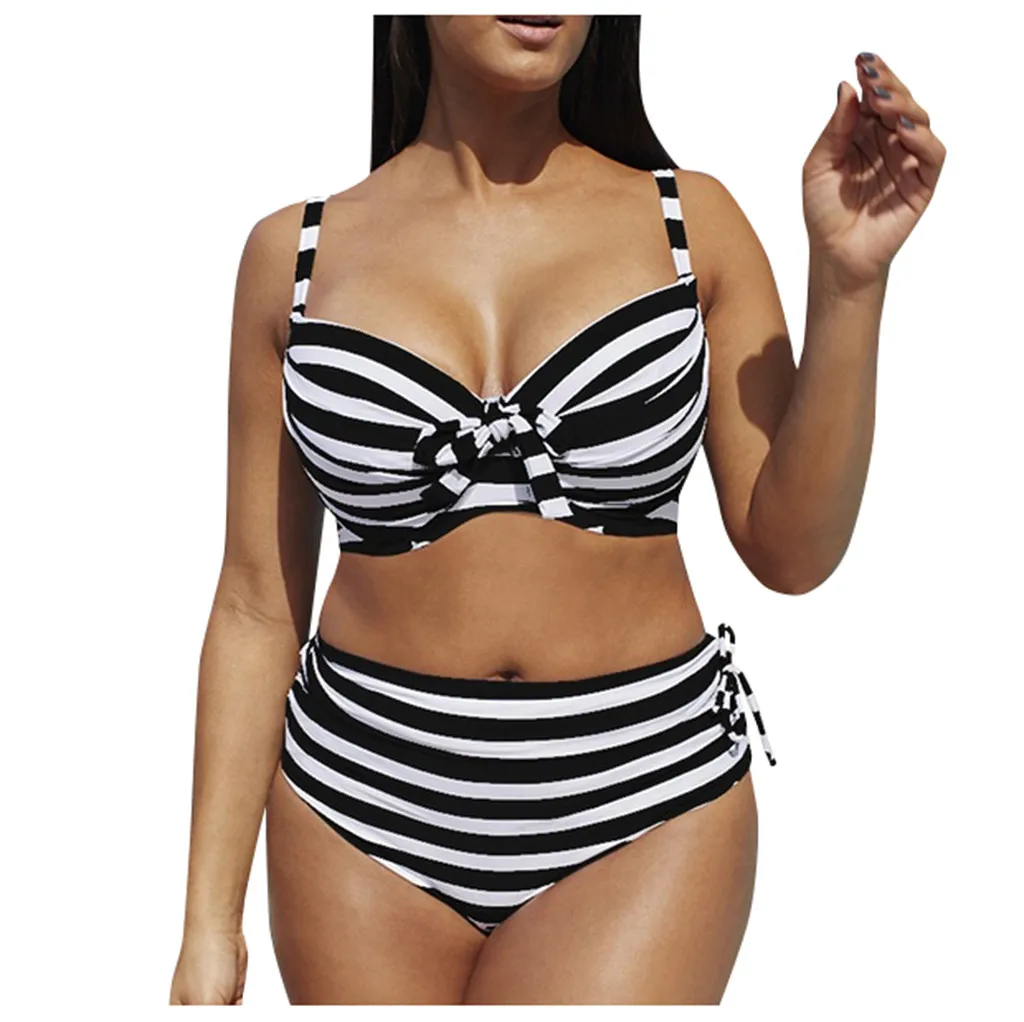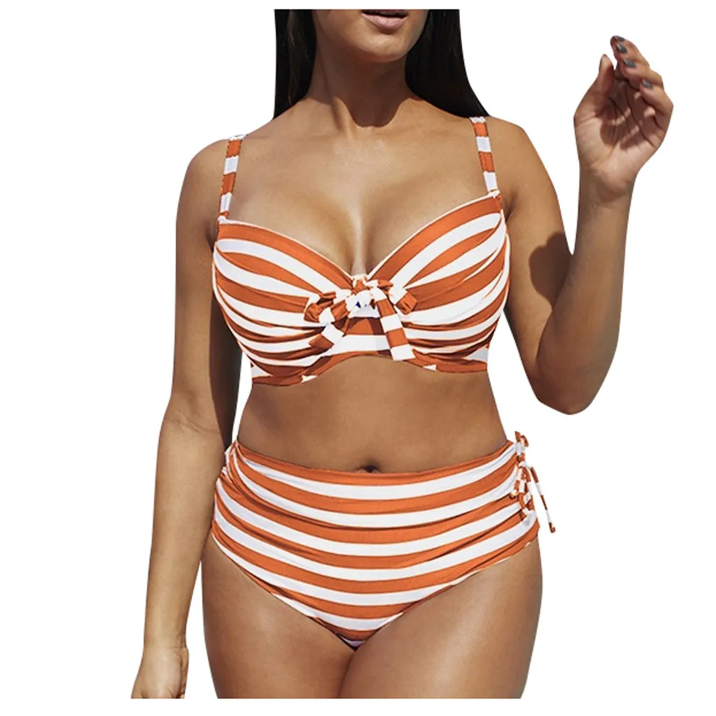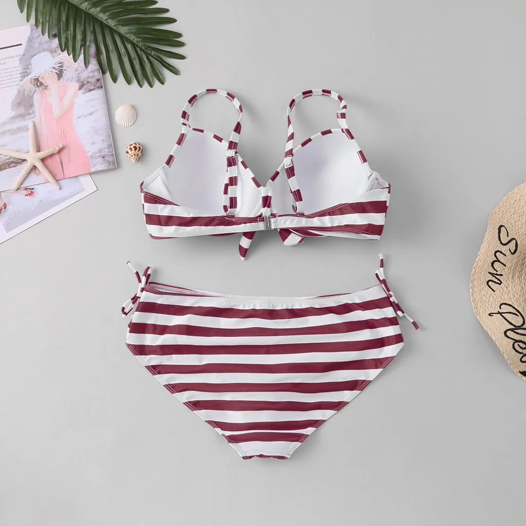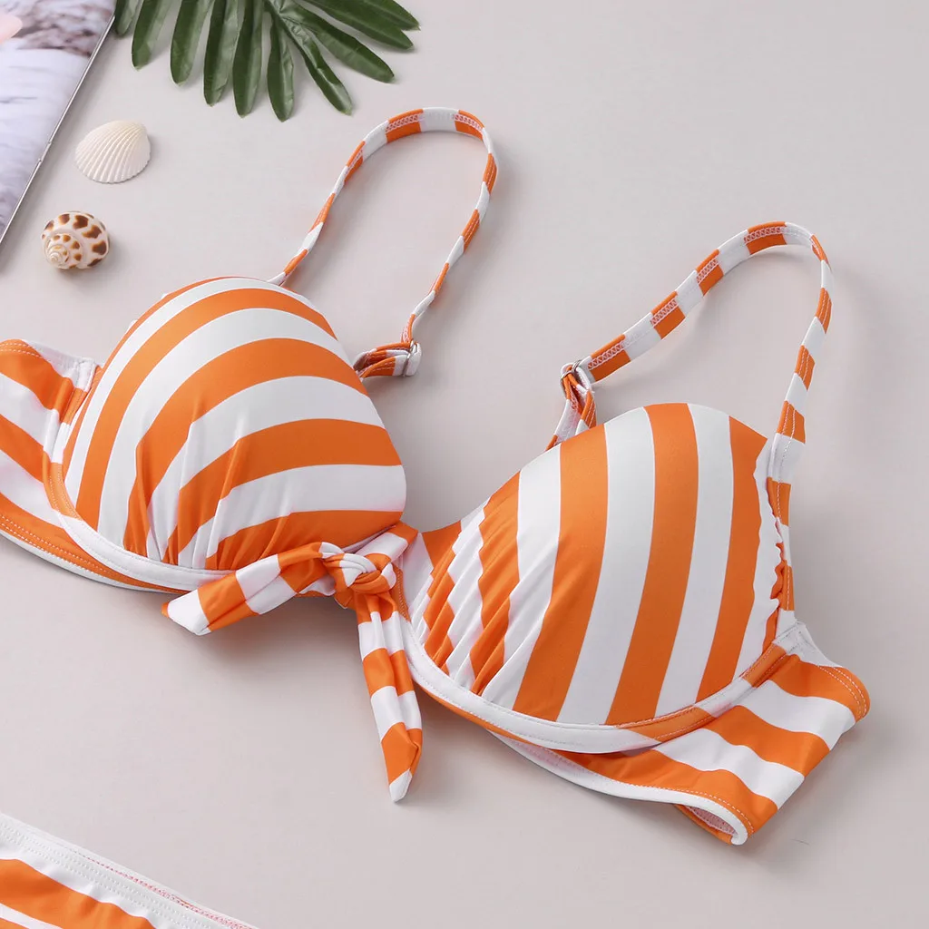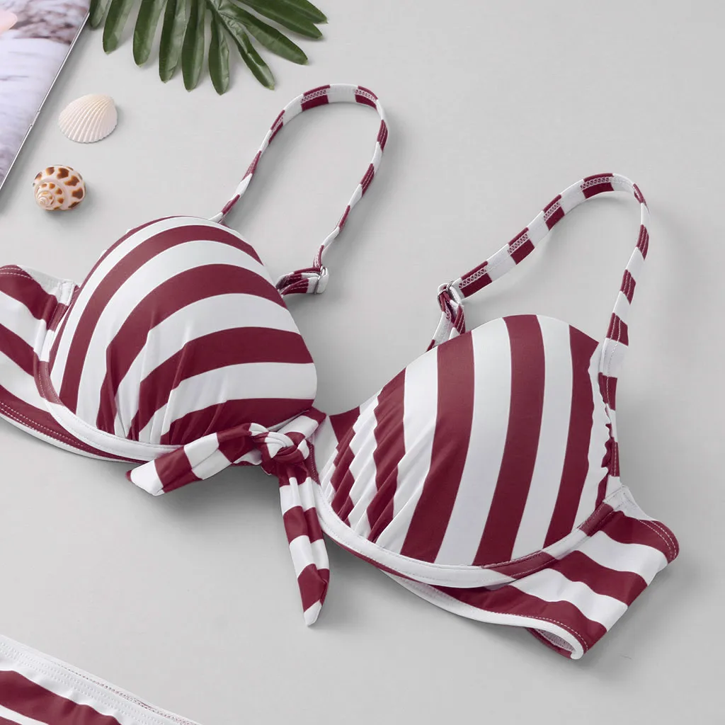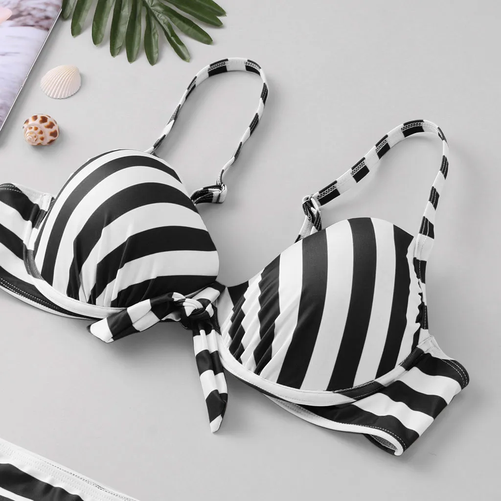 Женский комплект бикини с пуш-ап бюстгальтером и оборками, купальный костюм с низкой талией, купальный костюм