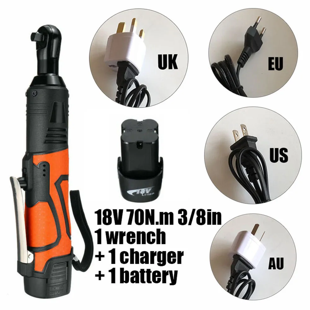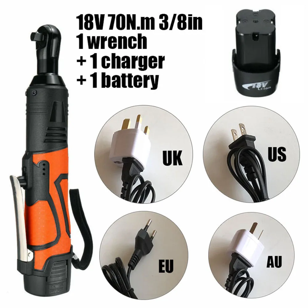 Аккумуляторный Электрический ударный гайковерт с трещоткой, 18 в 70N.m 3/8 дюймовБатарея & Зарядное устройство комплект 230 об/мин сетевой переходник UK/ US/ EU/ AU 11,8*2 дюйма ключ, дюймовый стандарт Мощность инструменты