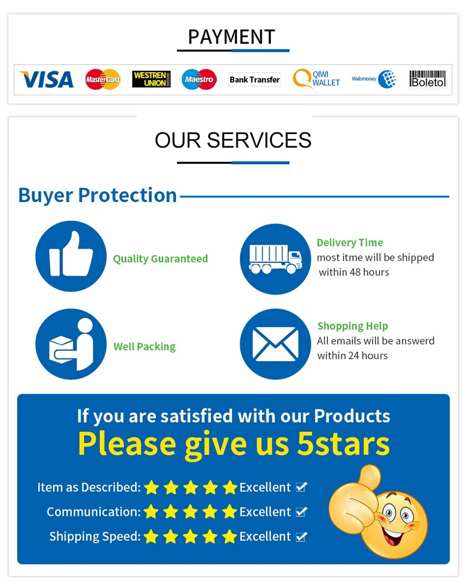 1. Мы обычно отправляем батареи международной коммерческой экспресс-почтой, UPS ,FedEx; Но теперь батарея относится к некоторым опасным товарам в некоторых странах, поэтому мы отправляем их специальной линией. 2. Доставка экспресс-почтой в пункт назначения занимает 8-15 дней (не включая время доставки), если отправка по специальной линии может занять более 25 дней. 3. Товары от батареи относятся к чувствительным товарам, если доставка задерживается, пожалуйста, свяжитесь с нами вовремя без споров