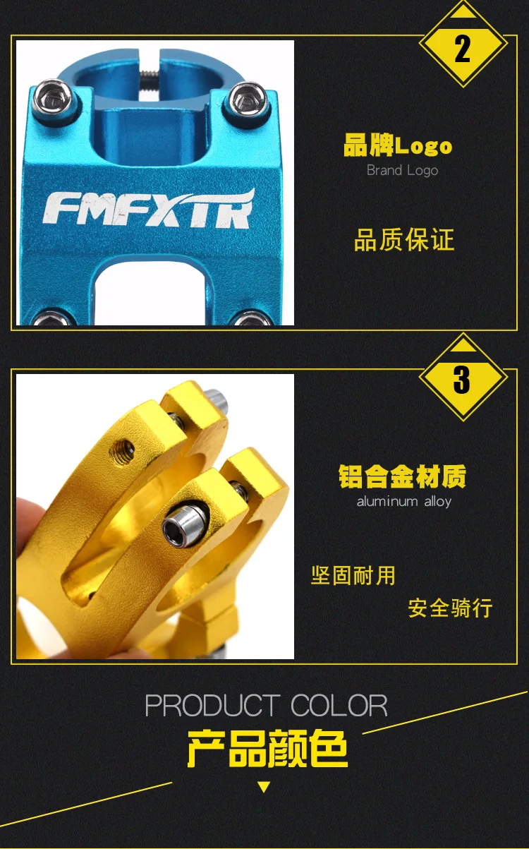 Название: стояк Бренд: fmfxtr Цвет: черный, красный, черный, синий, черный, золотой, черный, зеленый Размер: передняя вилка 28,6x руль 31,8x длина 45x высота 29,5mml Материал: алюминиевый сплав 6061 Вес: 130 г Подходит для: горного велосипеда/дорожного автомобиля/скалолазания и т. д. Особенности: утолщенный материал/полый дизайн корпуса