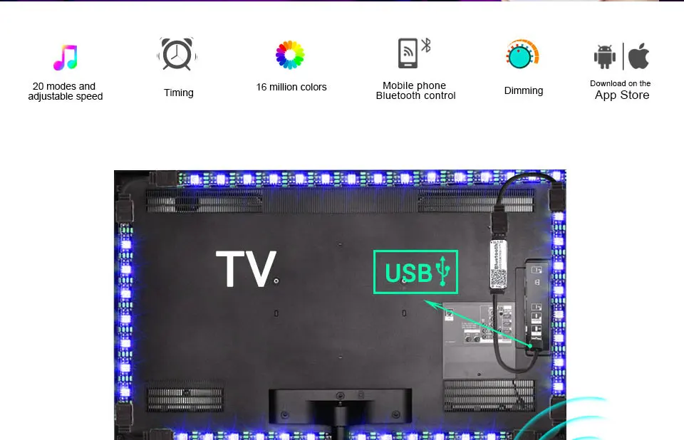 Спецификация: Тип: USB24 клавиша управления светодиодной подсветкой Напряжение: 5 В постоянного тока (Питание от USB) Водонепроницаемый: водонепроницаемый Тип СВЕТОДИОДА: SMD 5050 Длина зачистки: 50 см Цветность света: RGB Особенности: Простая установка с резиновой подложкой -Угол обзора: 120 ° -Срок службы светодиодов: 50000 часов Применение: телевизор, компьютер, RV, украшение автомобиля Архитектурное декоративное освещение -Освещение арки, навеса и края моста -Аудитории для прохода