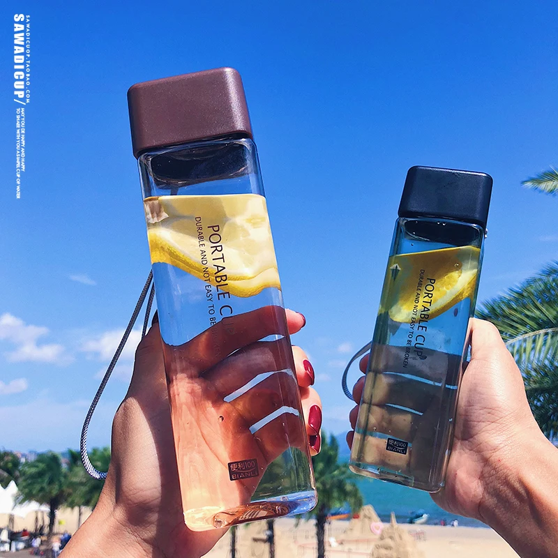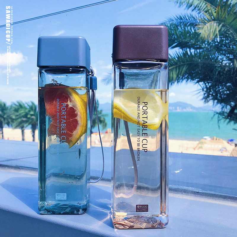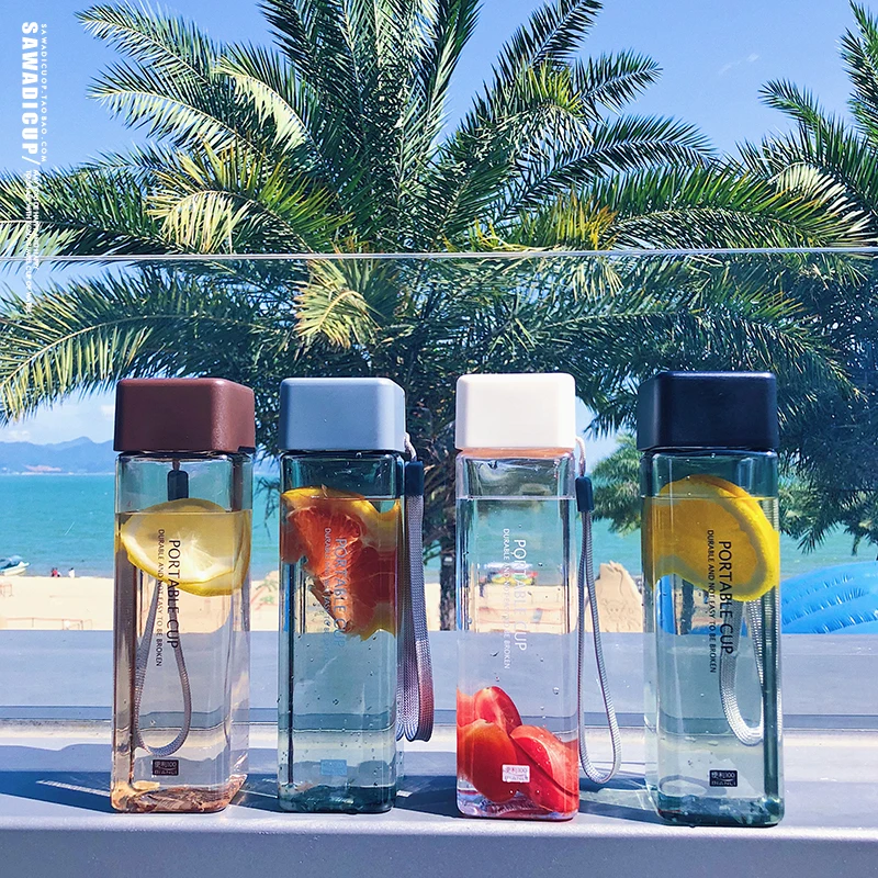 500 мл новая квадратная пластиковая бутылка для воды, чая, молока, фруктов, портативная бутылка для воды, Герметичная Бутылка для спорта на открытом воздухе, путешествий, кемпинга