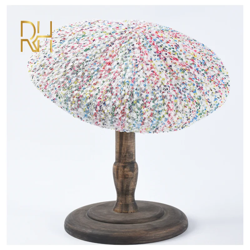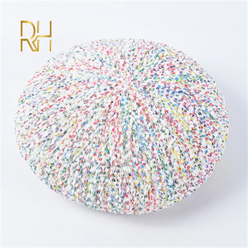Новинка, роскошный бренд, женский берет из твида с пайетками, модные береты твида, смешанные волокна, французские шапки, женские вязаные крючком шапки, зимняя плоская белая шапка RH