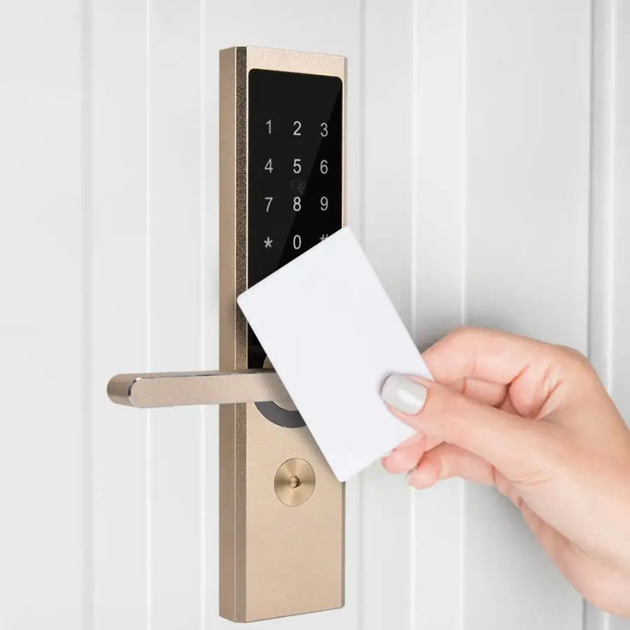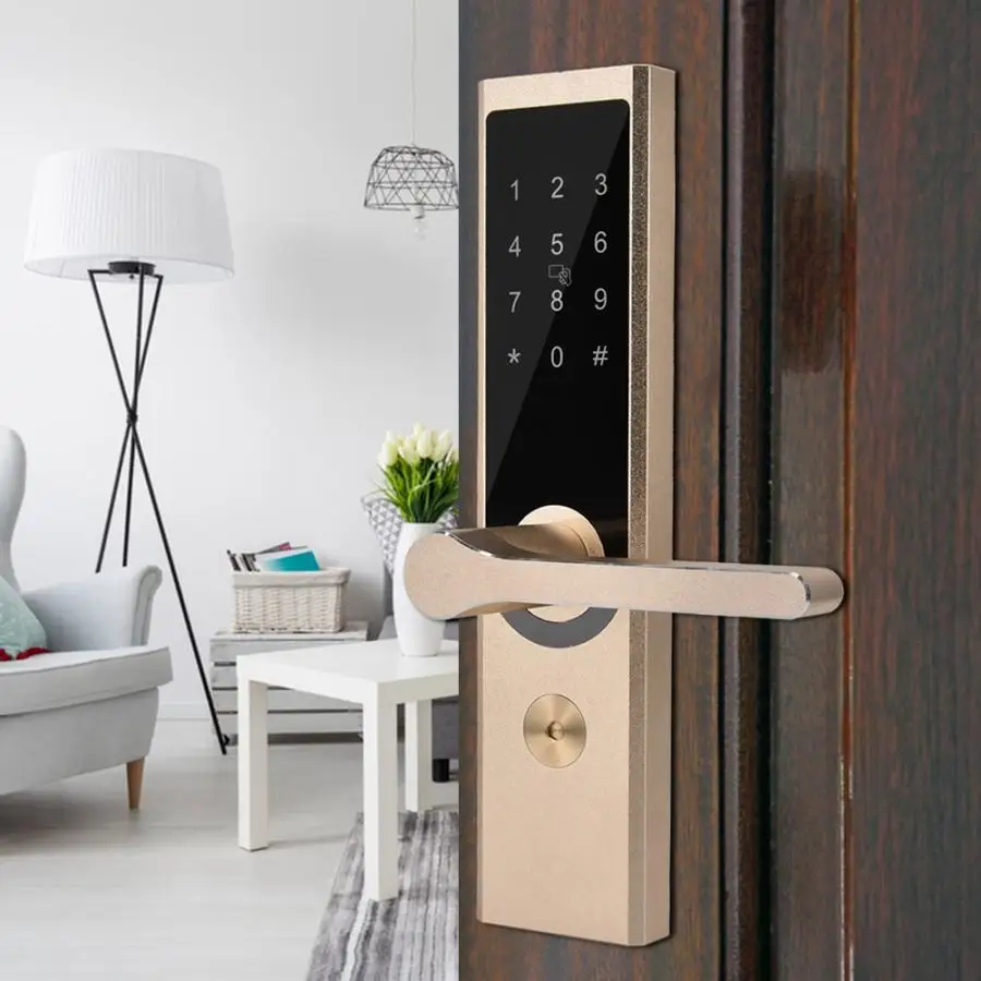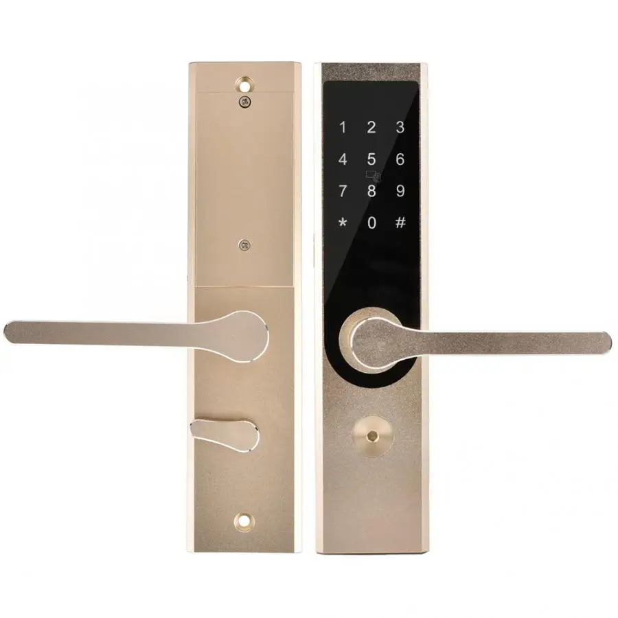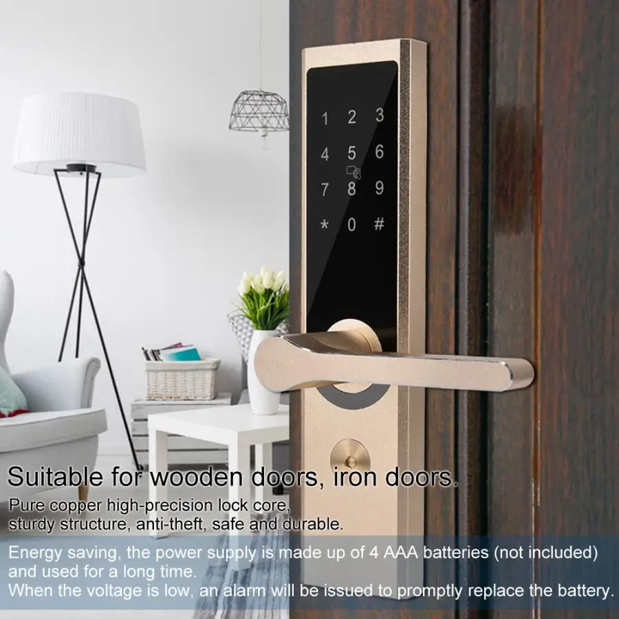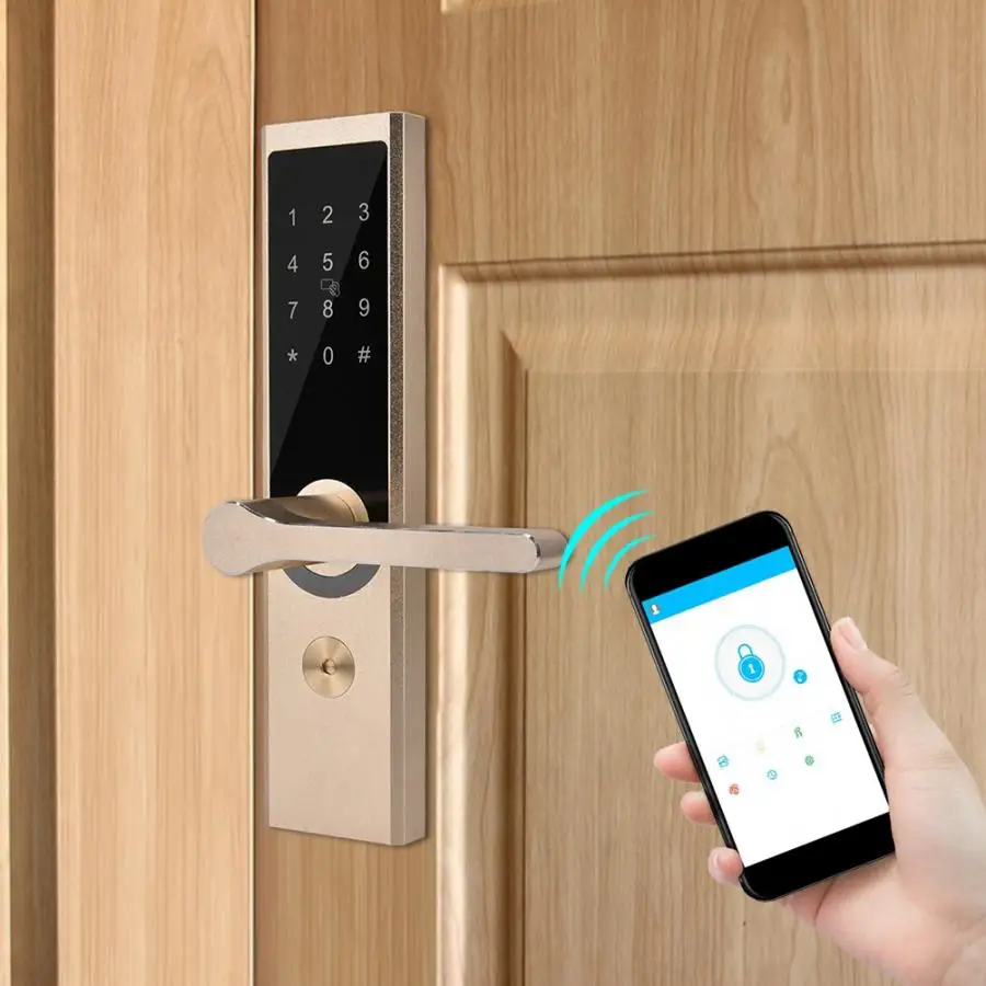 Это профессиональный комплект системы блокировки дверей, который идеально подходит для дома, офиса, отеля и квартиры приложений безопасности и поддерживает подключение к мобильным телефонам через Bluetooth 4,0. Изготовлен из космического алюминиевого сплава, имеет низкую плотность, высокую прочность, коррозионную стойкость и вес светильник. Вы можете открыть дверь с помощью карты разблокировки, пароля, приложения или механического ключа. Безопасно для вас и вашей семьи быть в безопасности весь день, легко установить и использовать, и подходит для большинства дверей с толщиной двери 40-110 мм.