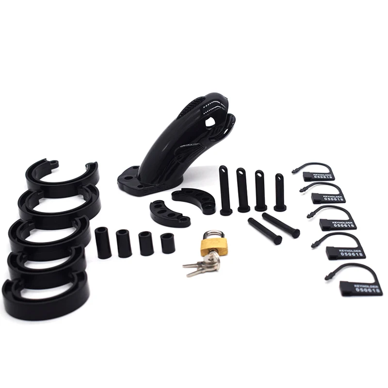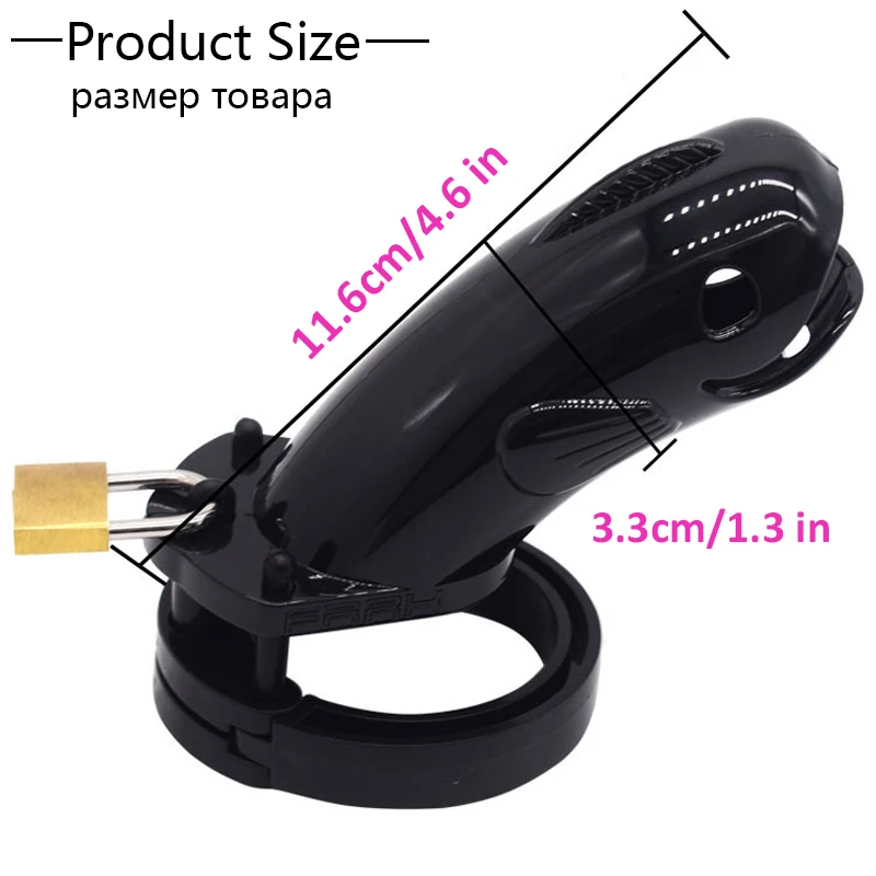 > 1. Тип изделия: устройство верности для мужчин > 2. Размер: L11.6 * W3.3cm > 3. Цвет: черный, прозрачный > 4. Материал: качественный пластик > 5. Особенность: кольцо для пениса для взрослых, секс-игрушки для мужчин > 6. Упаковка: клетка корпус + 5 различных размеров; Стопорные кольца (4,8 см/4,5 см/4,2 см/3,7 см/3,5 см) + 5 одноразовые этикетка замки + латунный замок и двух клавиш + крепежные детали