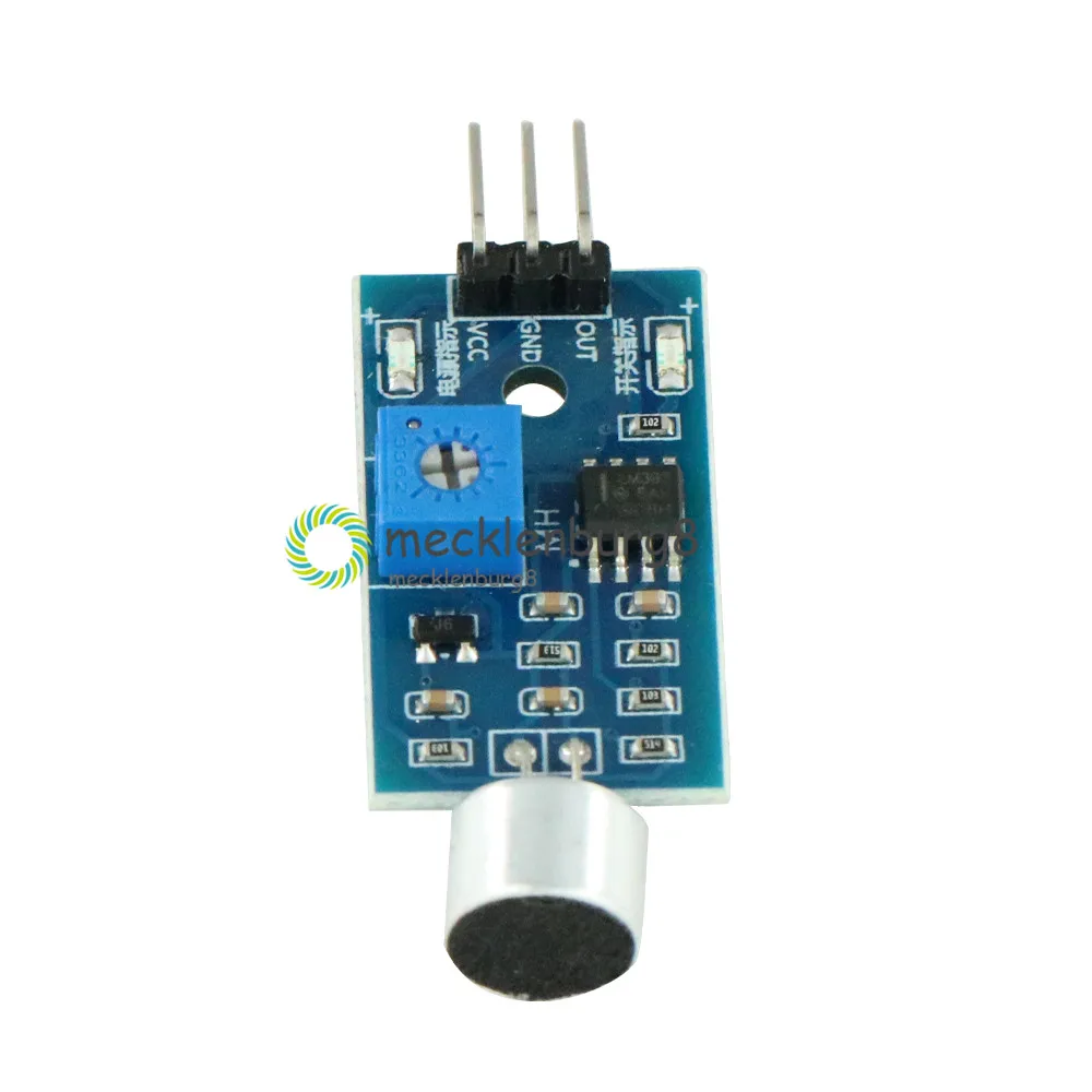 Описание: Может обнаруживать интенсивность звука, использовать Примечание: звуковой датчик может идентифицировать наличие звука (В соответствии с принципом вибрации) или определенная частота звука не распознавает громкость звука. Чувствительный Регулируемый цифровой потенциометр для регулировки (синий) Рабочее напряжение 3,3-5V Форма выхода: выход цифрового переключателя (0 и 1) Имеет фиксированное отверстие для болтов, удобная установка Маленькая дощечка Размер печатной платы: 3,2 см x 1,7 см Модуль подключения: VCC напряжение 3,3 V 5 V преобразователь (который может быть непосредственно подключенный к 3,3 V или 5 V однокристальный микроконтроллер) GND внешний к заземлению Выходной интерфейс переключателя небольшой пластины (0 и 1) Инструкции по уходу за изделием Звуковой модуль является наиболее чувствительным к интенсивности звука окружающей среды, обычно используется для обнаружения интенсивности звука окружающей среды. Когда модуль интенсивности звуковой среды не может достичь установленного порога, выход будет выводить высокий уровень, когда интенсивность звука из внешней среды больше установленного порога, выход модуля низкий уровень; Небольшая цифровая Выходная плата может быть непосредственно на микроконтроллер, через микрокомпьютер с одним чипом для обнаружения высокого и низкого уровня, таким образом, для обнаружения звуковой среды; Посылка включает в себя: 1x модуль звукового датчика микрофона