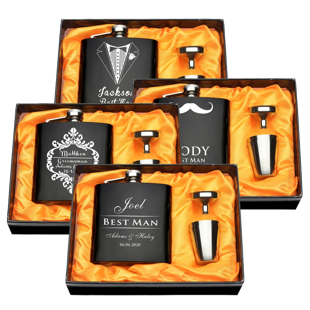 Персонализированные 6 унций из нержавеющей стали фляга с подарочной коробкой Материал: 18/8 нержавеющая сталь/степень еды/безопасность Фляга захвата: 95x22x110 мм 6 унций = 170 мл Фляга-1 шт. Линия 1:xxx Линия 2:xxx Линия 3:xxx И так далее