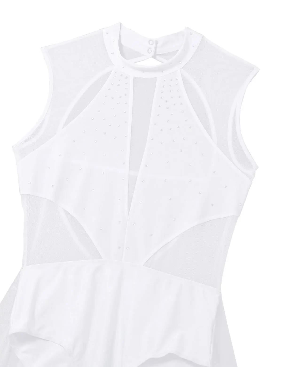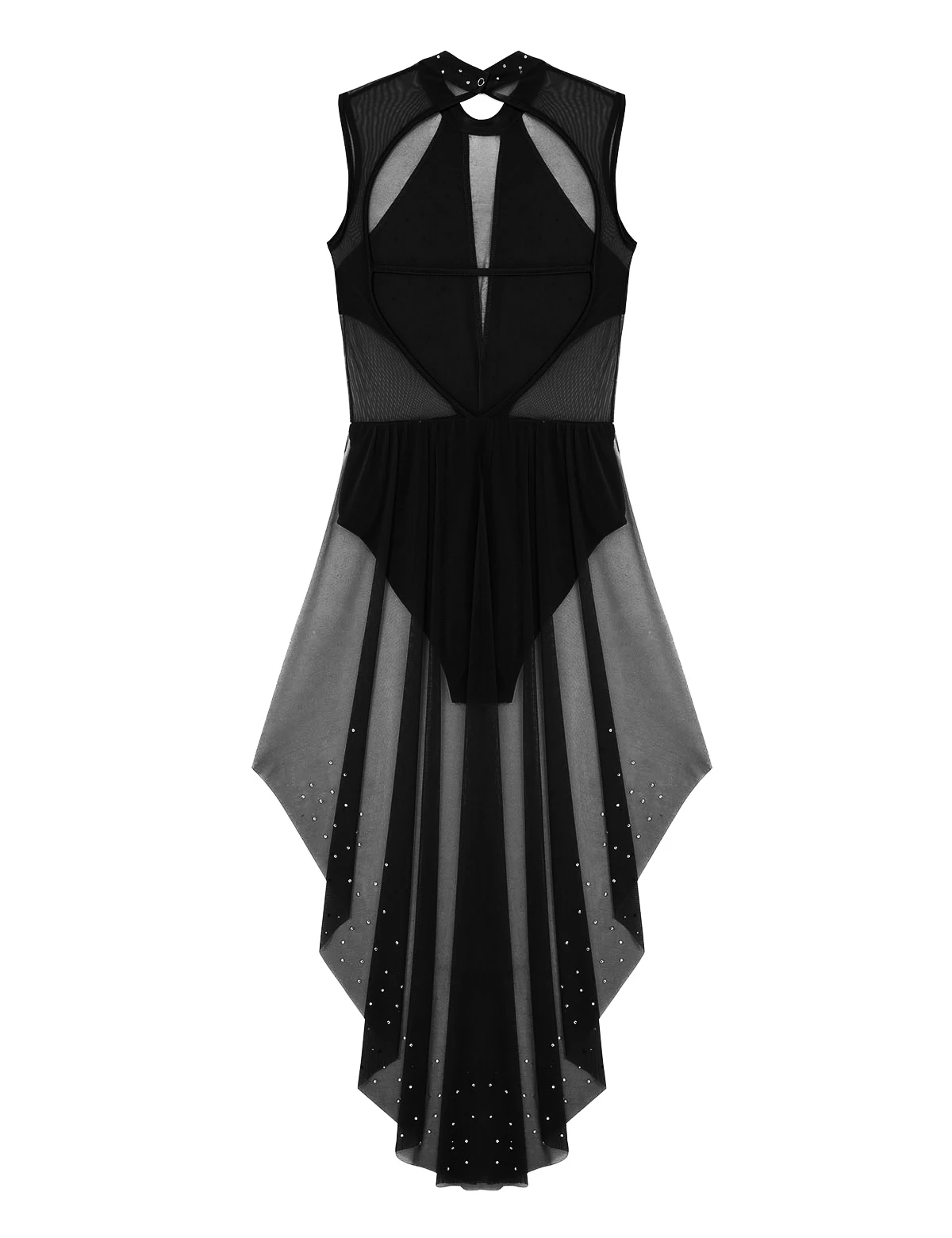 Круглый вырез, без рукавов и с открытой спиной, прозрачный сетчатый лиф, украшенный блестящими стразами, придает вам элегантный вид.