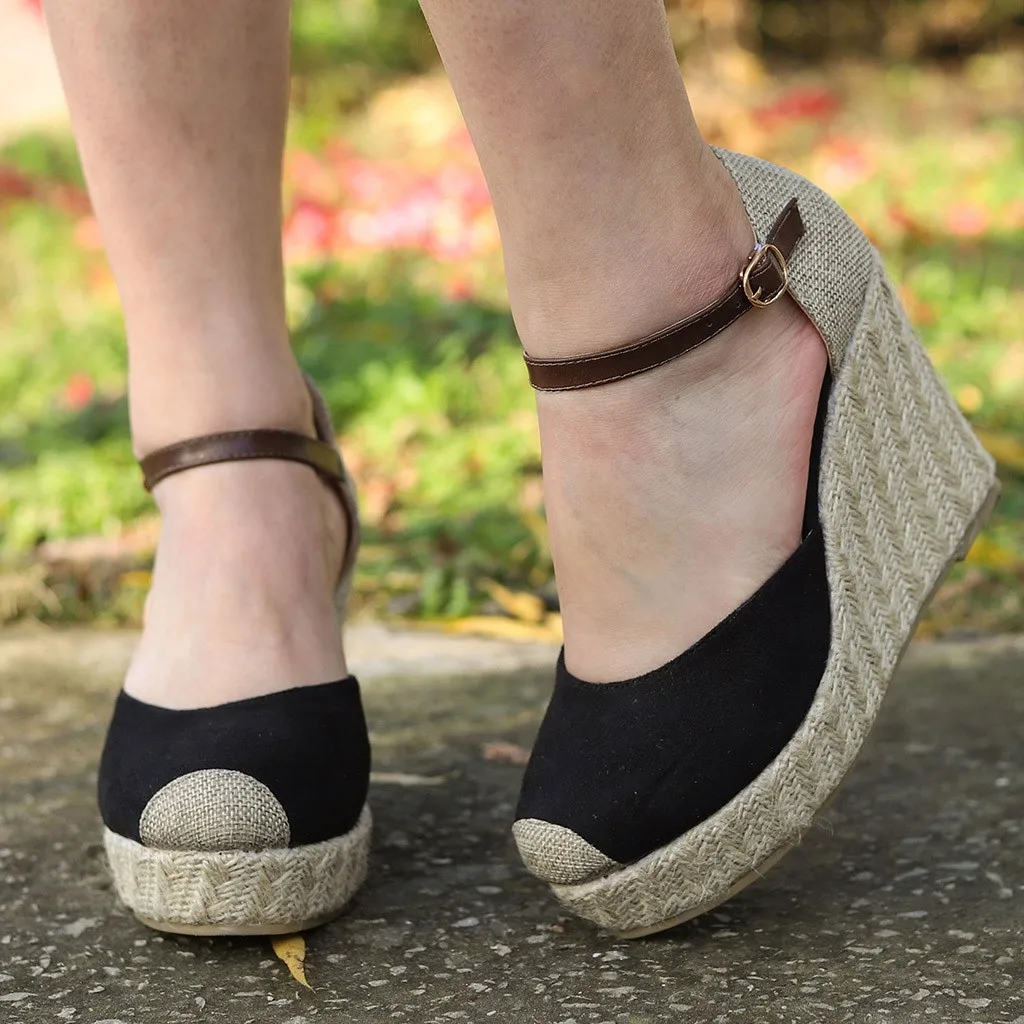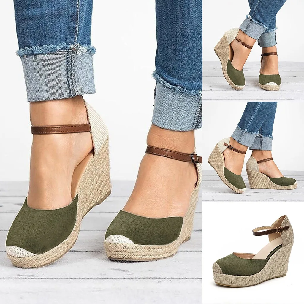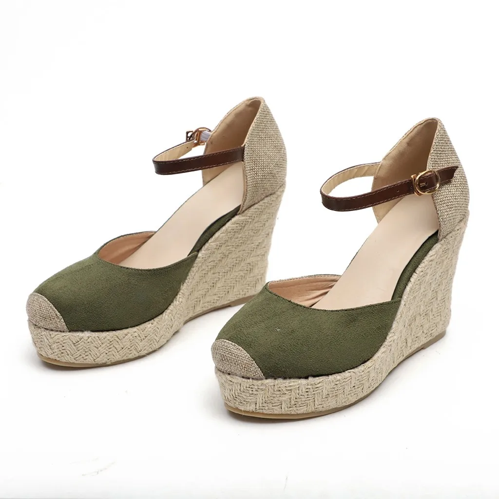 Модные женские босоножки из флока на высокой танкетке; Повседневная обувь с круглым носком