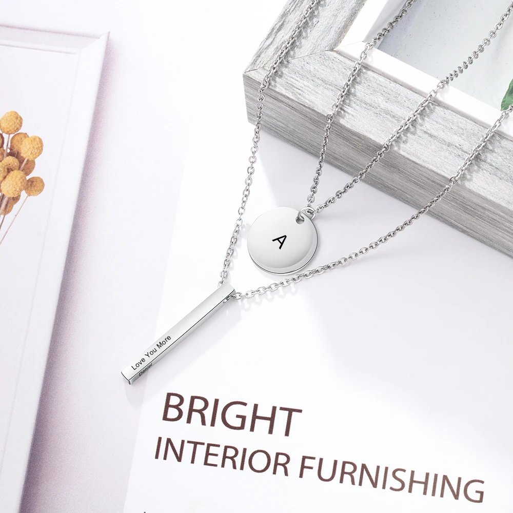 Персонализированное гравированное ожерелье с надписью для женщин из нержавеющей стали с вертикальной планкой ожерелья кулоны Модные ювелирные изделия
