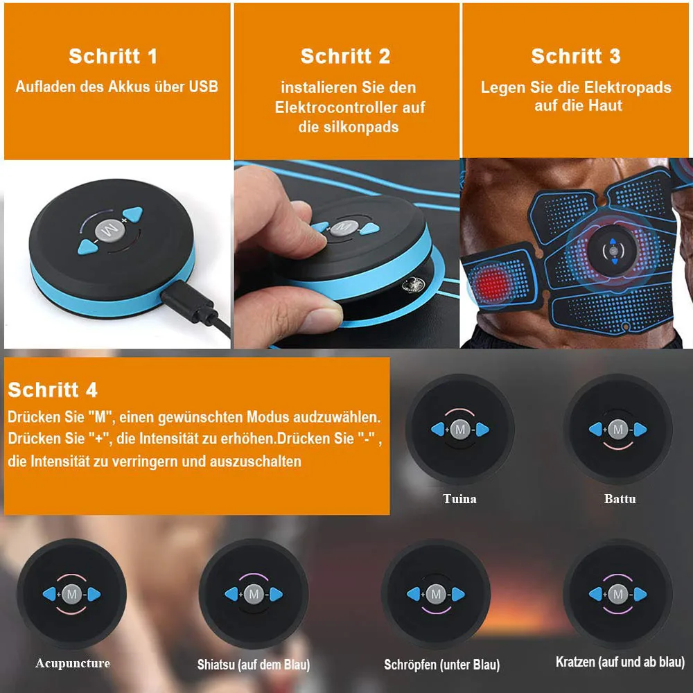 Особенности 6 режимов и 10 частот тока: EMS стимулятор мышц имеет 6 режимов и 10 уровней частоты тока для удовлетворения ваших ежедневных упражнений. Режим 1-2 ток НИЗКИЙ, он предназначен для сжигания жира; 3-4 режима тока умеренный, лучше для роста мышц; 5-6 модный ток сильный, обеспечивает сильные эластичные движения для укрепления мышц вашего тела. Вы увидите результаты на вашем abs не более 3 месяцев. Выдвижной usb-кабель 3-в-1 эффективную зарядку: отличается от других продавцов, брюшной ремень поддерживает 3 в 1 взаимный обмен данными между компьютером и периферийными устройствами зарядки. Его можно заряжать с помощью безопасного и легкого подключения от ноутбука, мобильного аккумулятора, портативного зарядного устройства, автомобильного источника питания. При полной зарядке (время зарядки около 30 минут), он используется для около 3 раз (время работы составляет 20 минут). Около 20-30 минут/день: он равен 1500 м бега, 60 минут сидений, 30 минут свободного плавания, мы рекомендуем вам улучшить свой рацион питания и сохранить тело чистым без пота. Описание: Основной материал корпуса: ПЭТ полимерный гель Подкладка: полиакриламид Глицерин дистанционного управления: ABS смола EMS устройства: перезаряжаемые Мощность источник Вход: 100-240 В пер. тока, 50/60 Гц Выход: DC5V 1000mA Посылка в комплект входит: · 1 х брюшной пояс · 2 ремня безопасности · Контроллер-3 шт. · 1 usb-кабель для зарядки 3-в-1 · 1 Руководство пользователя