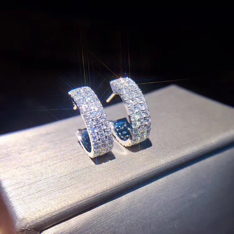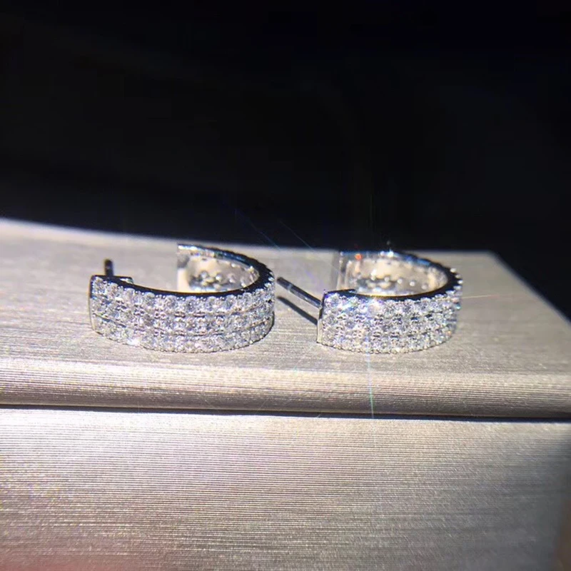 Трендовые серьги-гвоздики из стерлингового серебра 925 пробы с тремя рядами AAAAA, ювелирные изделия для свадьбы, женские серьги из серебра 925 пробы Материал: серебро 925 пробы, циркон Размеры: как показано на рисунке Состояние: 100% новый бренд Повод: подарок на свадьбу, день рождения, День святого Валентина