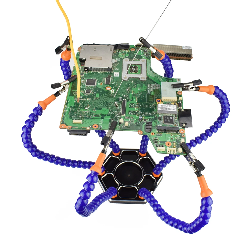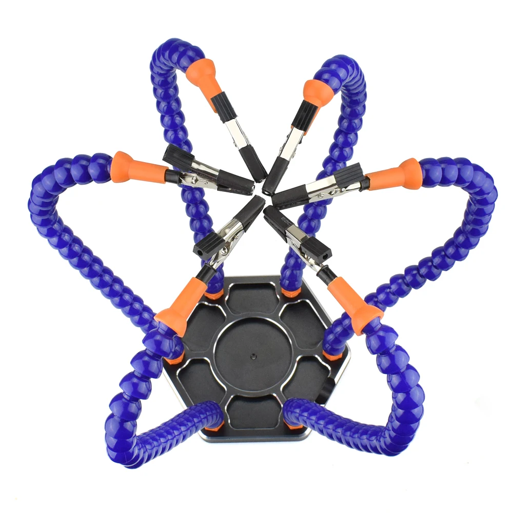 Инструмент для пайки NEWACALOX с 6 гибкими рукоятками для пайки и ремонта сборки Характеристика: 1. Третья рука ускоряет пайки, электроники и DIY проектов, позволяя вам закончить свою работу быстрее, чем когда-либо прежде! Наша третья рука делает позиционирование ветерком с шестью гибкими дужками. 2. Гибкие руки с большим поворотным зажимом, зажим может быть удален, более стабильный, предотвращает перегрев зажимы от падения. 3. Точная резка и красиво Золотое анодированное основание 4. Силиконовый клип-наконечники для максимальной термостойкости 5. Съемные ножки для стабильной автономной работы 6. Прекрасно интегрируется с panavise и базовые крепления Спецификация: Основание из алюминиевого сплава: Φ140мм x h11мм Универсальная Длина соединительной трубы: 340 мм (в комплект входит крокодил) Базовый цвет из алюминиевого сплава: черный Вес упаковки: 550 г Посылка включает: 1 шт. основание из алюминиевого сплава 1 шт. мини гаечный ключ 6 шт. универсальная Соединительная труба Пьедестал: черный Другие аксессуары должны превалировать в добром виде! Большое спасибо
