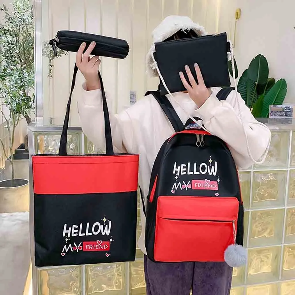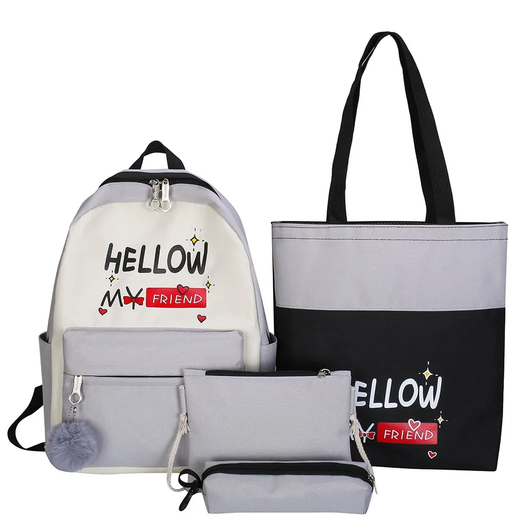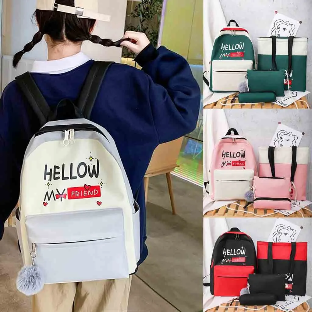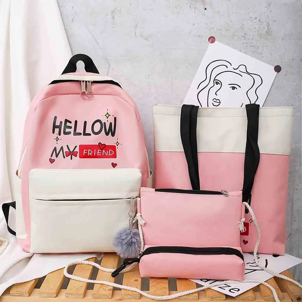 Женский новый рюкзак, модная сумка через плечо, 4 шт., Студенческая сумка, новый чехол-карандаш, сумочка