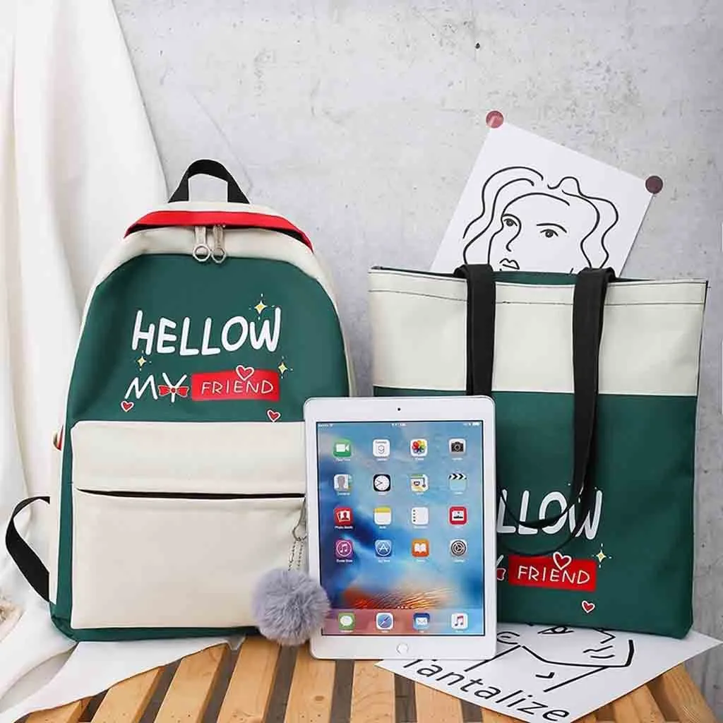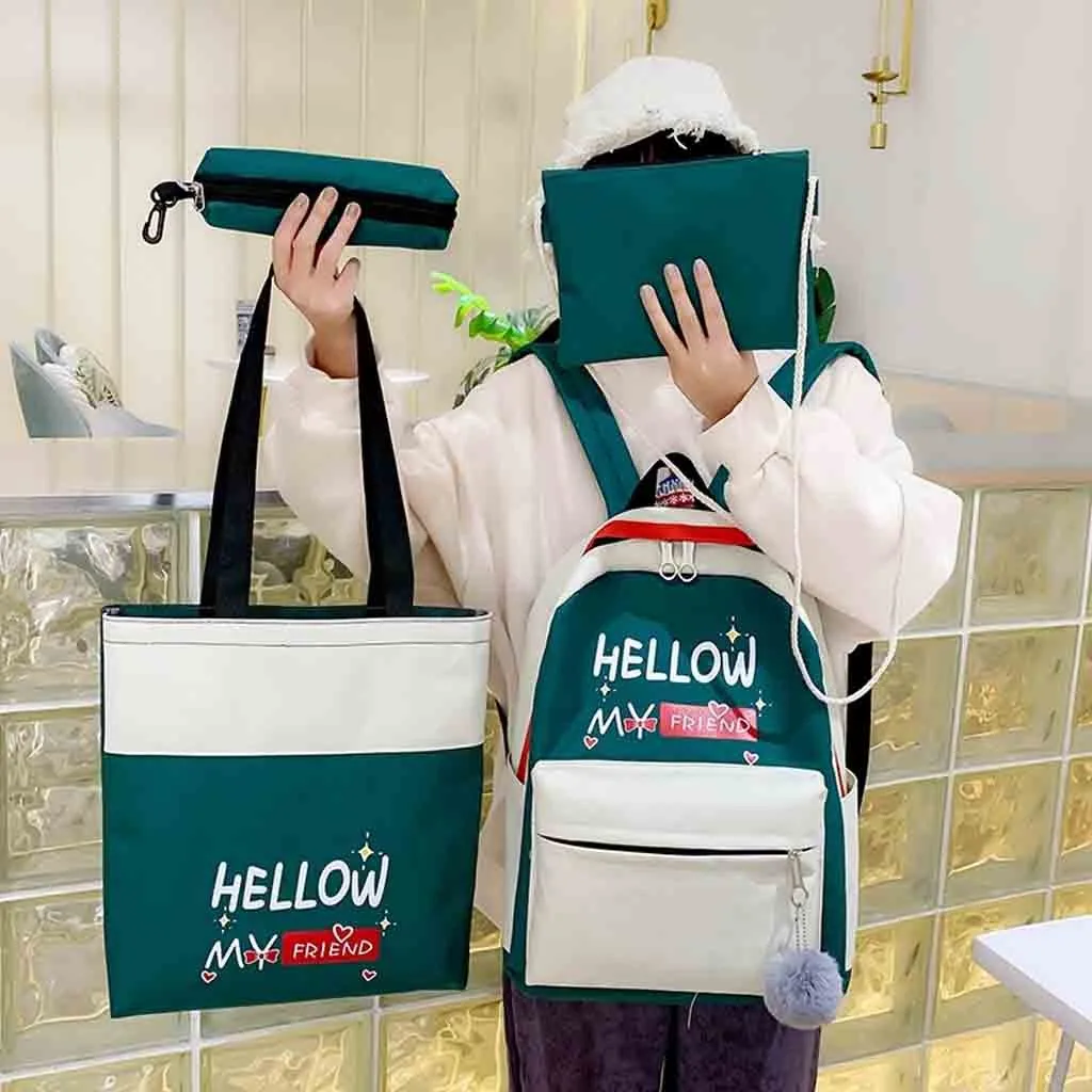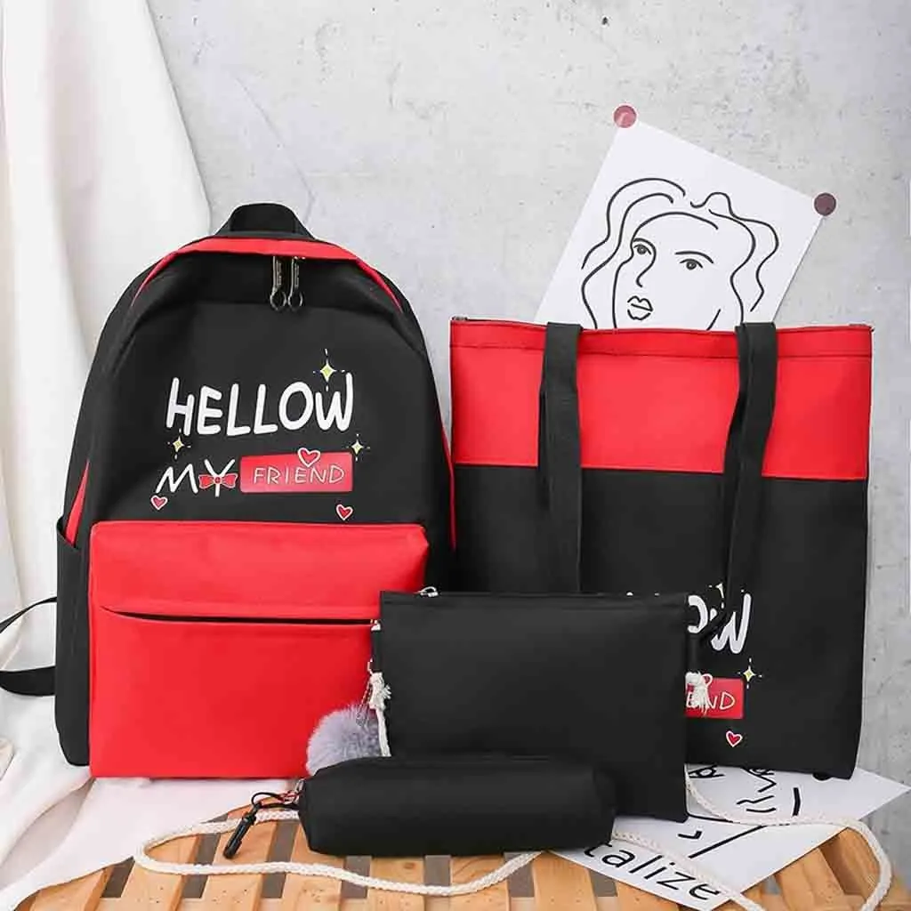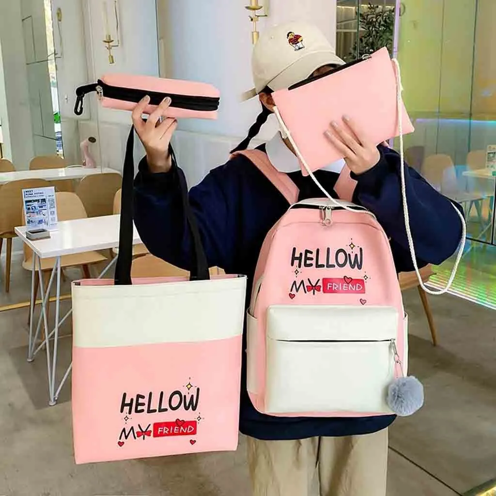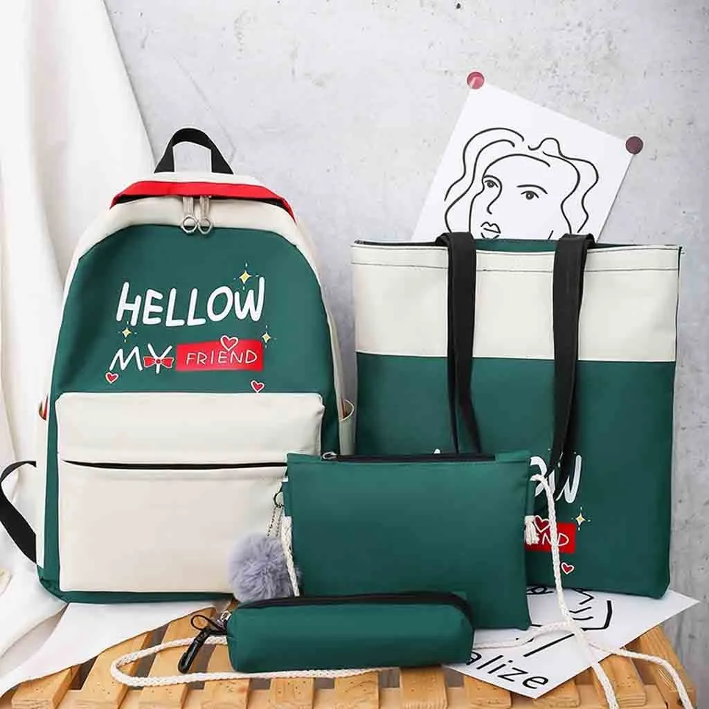 Женский новый рюкзак, модная сумка через плечо, 4 шт., Студенческая сумка, новый чехол-карандаш, сумочка
