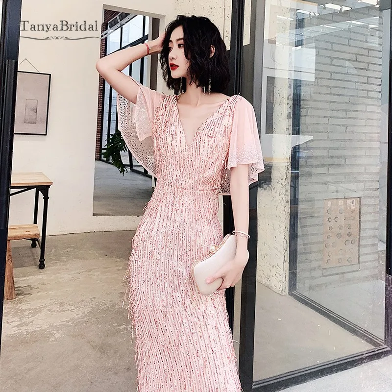 Новый список V образным вырезом вечернее платье с пайетками длинное платье с v-образным вырезом на спине платье модные вечерние элегантные модные Выходные туфли на выпускной бал