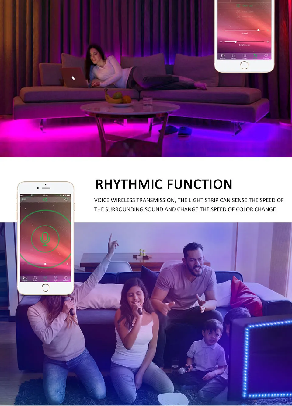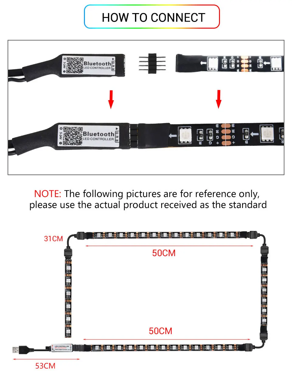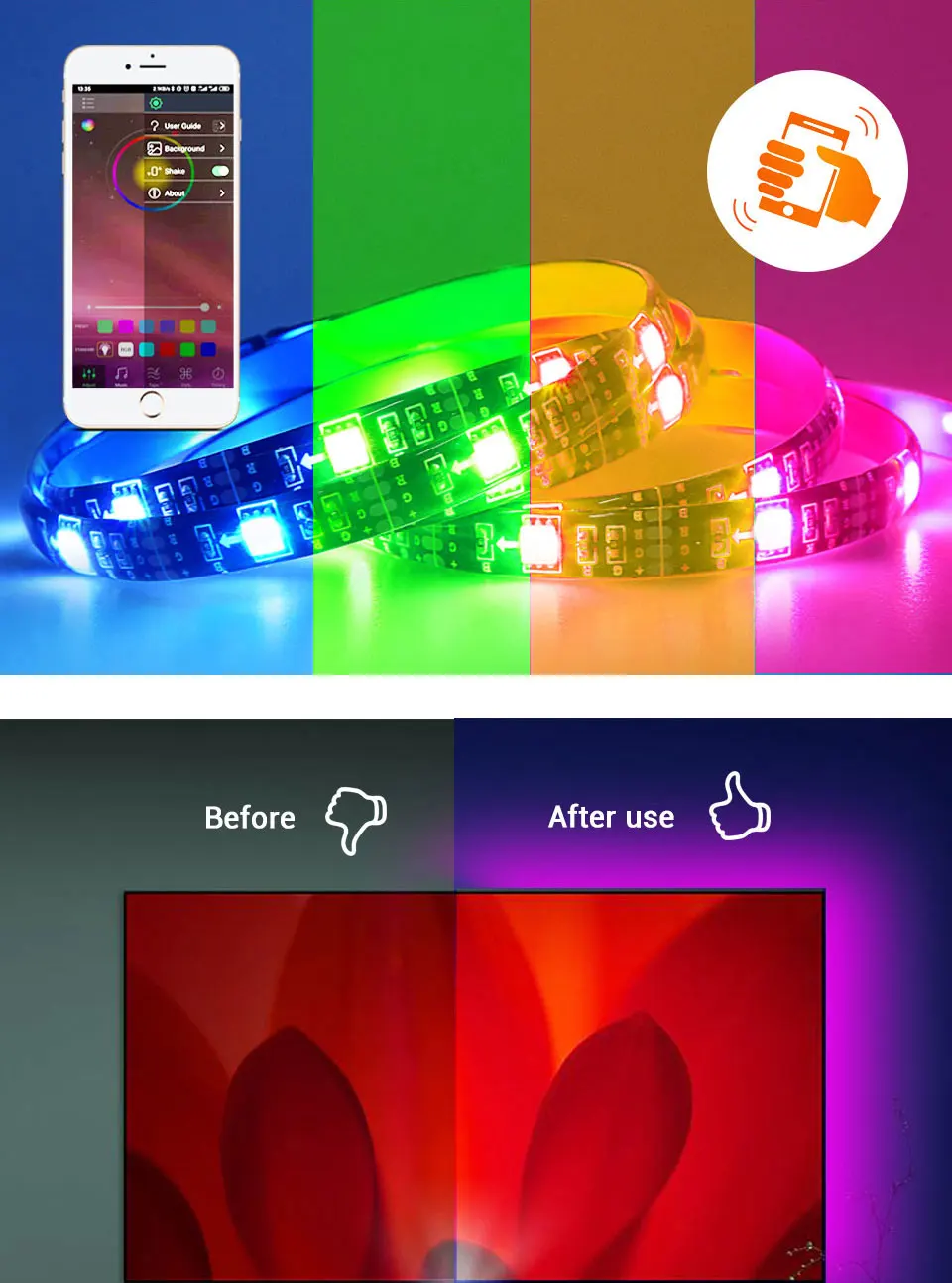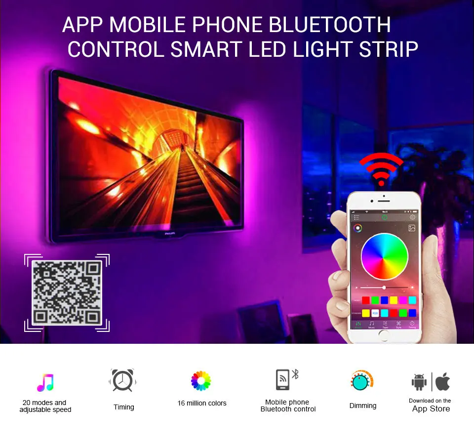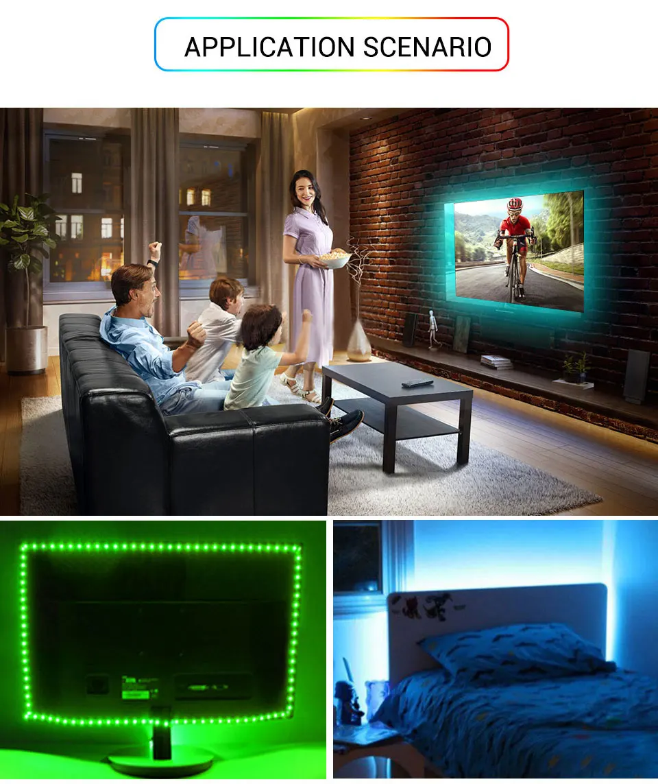 Технические характеристики: Управление режима: bluetooth Контроллер: контроллер bluetooth Светильник Длина ленты: 50 м/100 см/150 см/200 см/300 см (опционально) Светодиодный Тип: SMD 5050 Светодиодный Количество: 30/м Рабочее напряжение: 5 В Светильник Цвет: разноцветный "Красный-зелёный-желтый Базовый цвет полосы: черный Водонепроницаемый: IP20 не водонепроницаемый/IP65 водонепроницаемый Срок службы: около 50000 часов Особенности: -Беспроводной bluetooth-контроллер: Управляемый через приложение светодиодный светильник может управляться смартфоном. Приложение доступно для ios и android, скачать с помощью сканирования qr-кода, предложить умный образ жизни. -Синхронизация с музыкой: Не требуется концентратор, музыкальный датчик активирован, идеально подходит для светодиодная подсветка под шкаф, светодиодная подсветка телевизора или светодиодные Рождественские огни. -Встроенный микрофон высокой чувствительности Светильник с подсветкой и цветовым регулированием автоматически устанавливается на основе окружающего звука, светильник следует за музыкой и микрофоном. Позволяет менять светильник на 16 миллионов различных цветов. И каждый цвет затемнен. -Мощность: Питание от usb-порта 5 В, поэтому их можно подключить к таким устройствам, как банки питания, компьютеры, настольный компьютер, планшет, ноутбуки или телефон. Зарядные устройства/адаптеры (5 В), особенно подходят для помещений. -Легко Установка: Просто установить, с клейкой лентой, просто порвите ленту, затем вы можете приклеить или повесить на любом месте, где вы хотите. Неразрушающая лента не порвет ничего в будущем, если вы хотите ее снять. -Супер яркий: 5050SMD RGB водонепроницаемая полоса цвет сменный светодиод, вспышка, высокая интенсивность и надежность.