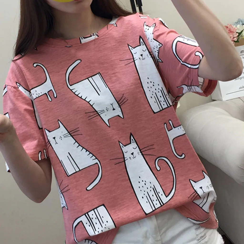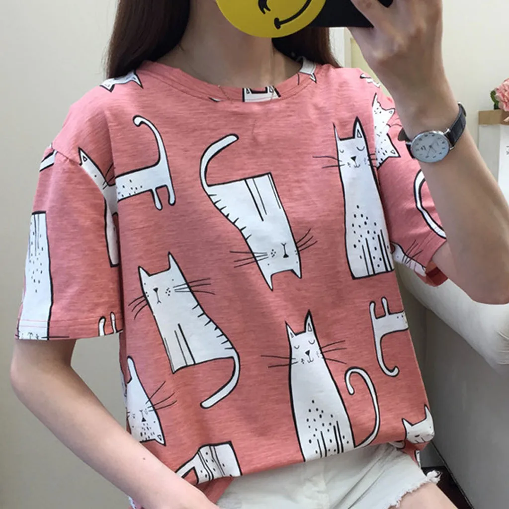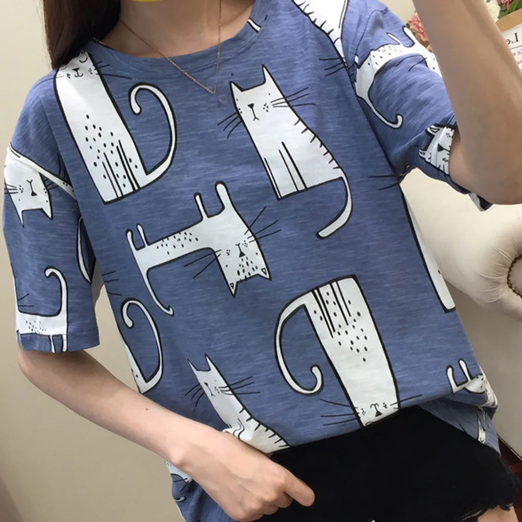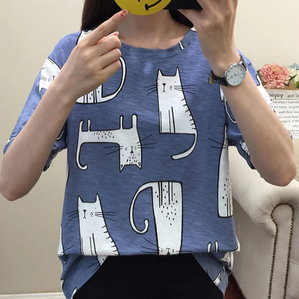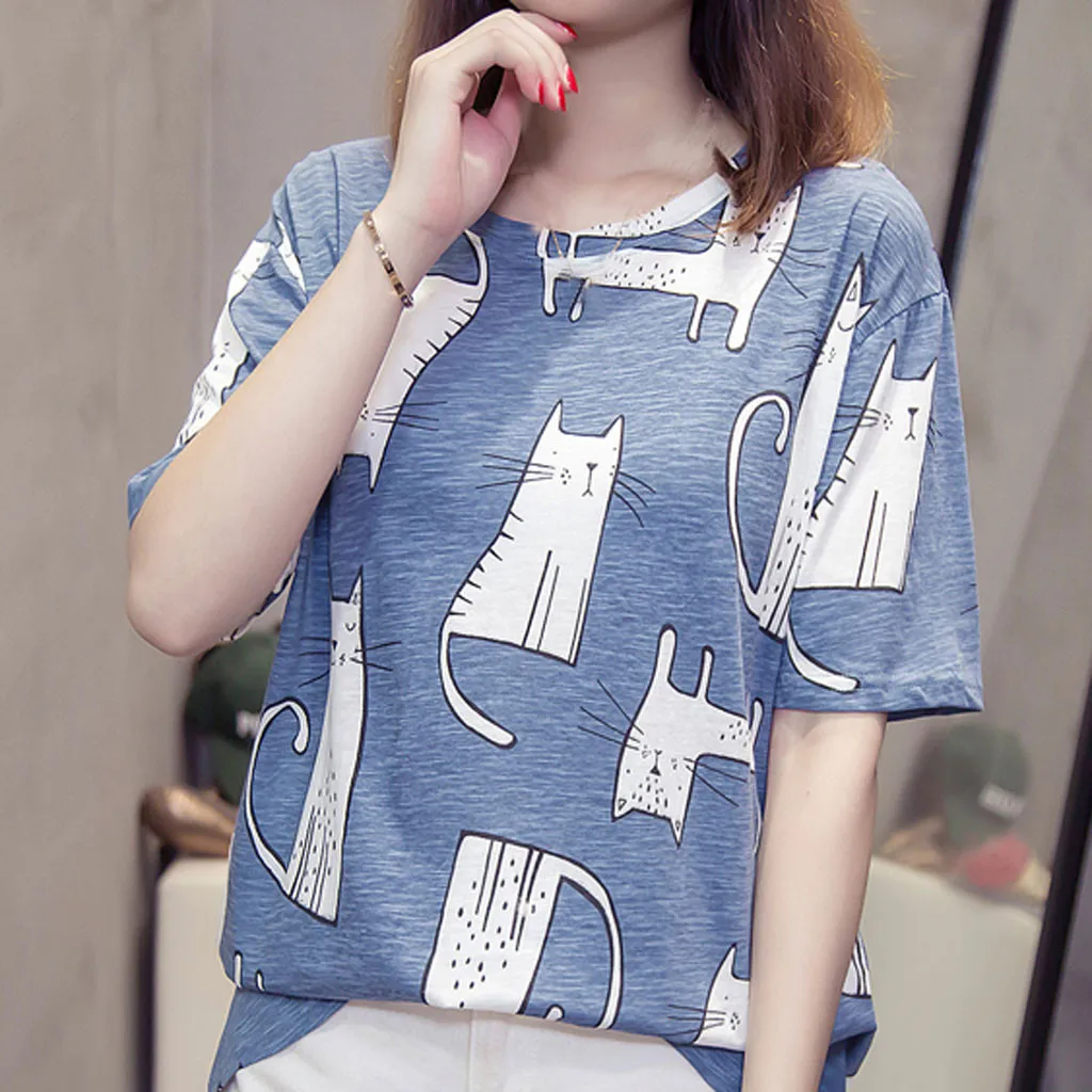 Мода женщин печати размера плюс сплошной цвет короткий рукав футболки Блузка