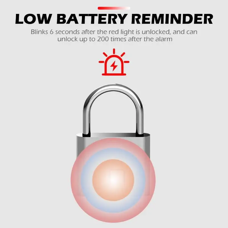 Оповещение о низкой мощности: Красный светильник мигает в течение 6 секунд после разблокировки, и он может разблокироваться до 200 раз после тревоги