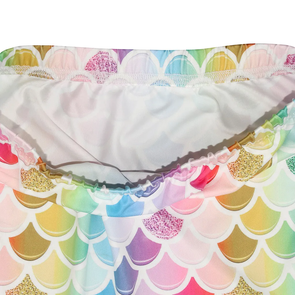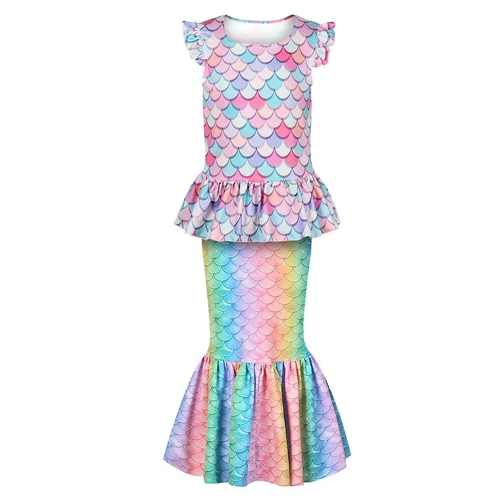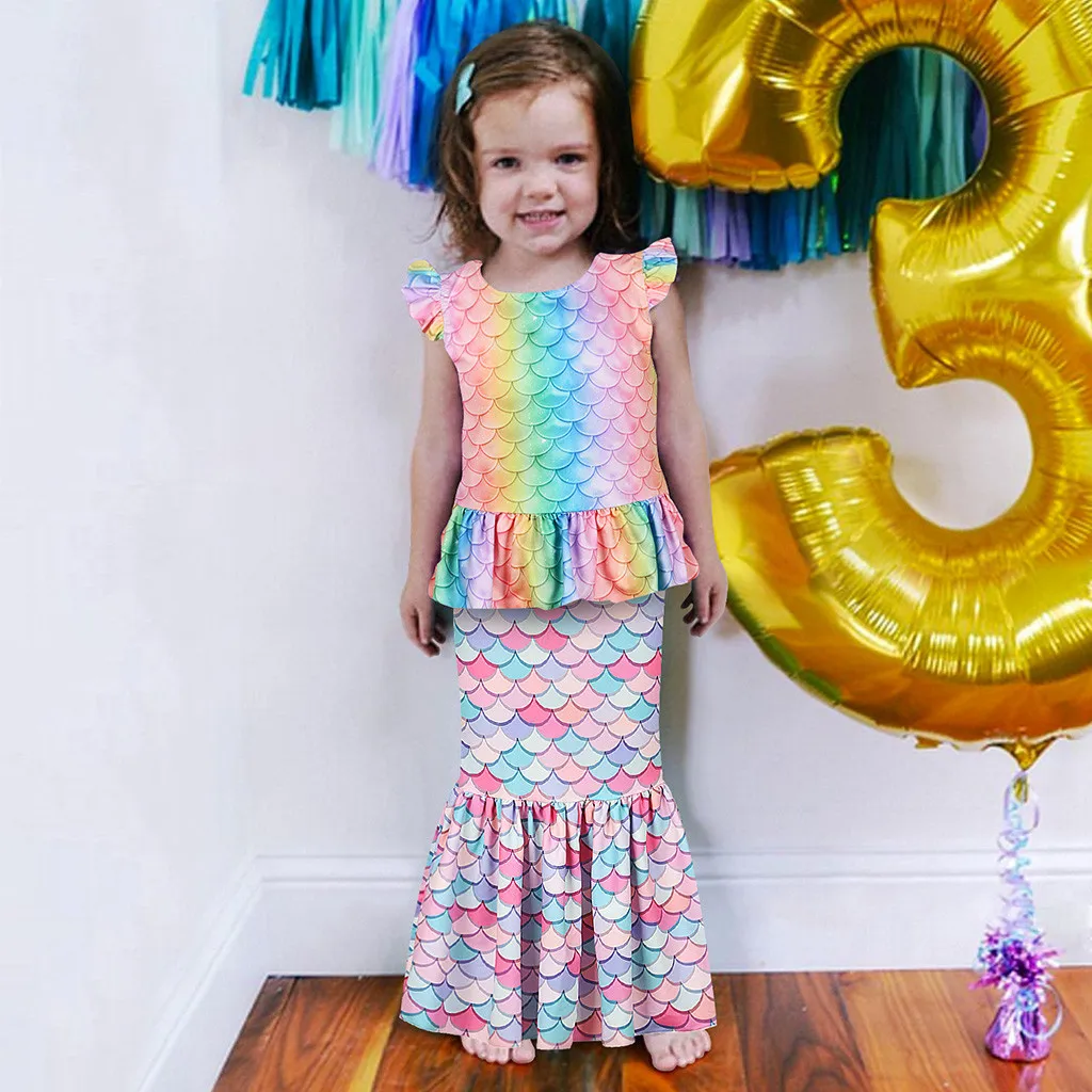 Многоцветная шкала для маленьких девочек, рубашка с принтом, топы, юбка с оборками, комплект одежды