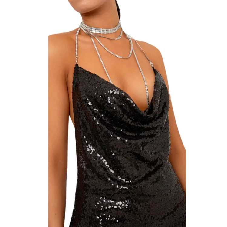 Женское облегающее вечернее платье элегантное черное без рукавов с круглым