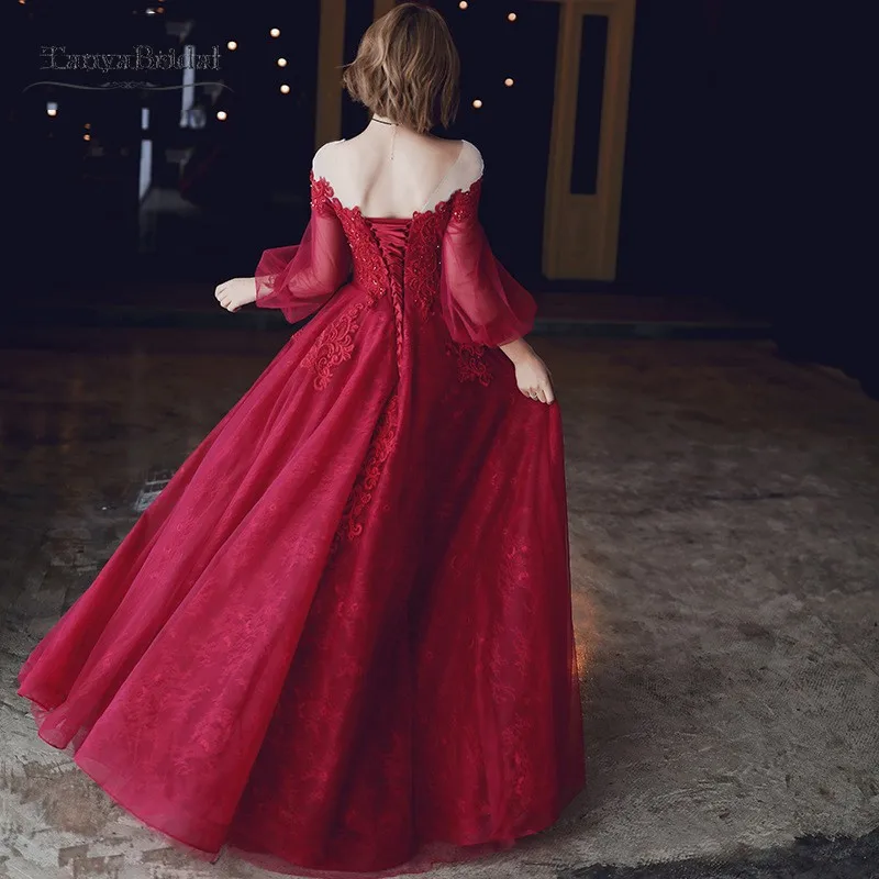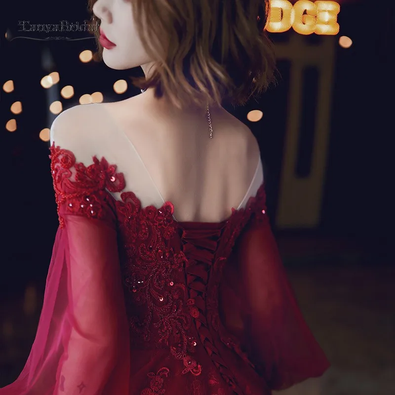 Платья для выпускного вечера 2020 рукава Иллюзия шеи Сексуальная линия Красное Кружевное фатиновое Элегантное Платье vestidos de fiesta largos elegantes de gala