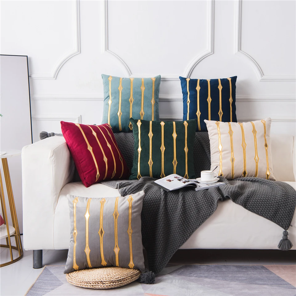 Размеры: 45*45 см/18 * 18in Материал: мягкая бархатная ткань Тип: наволочка с геометрическими полосками и вышивкой Посылка список: 1 х чехол для подушки (без сердечника подушки)