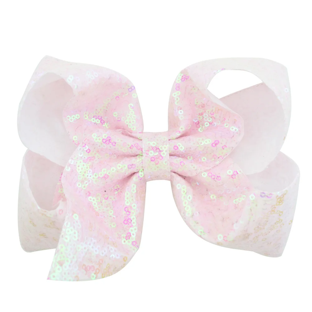 20 шт./лот, большой цвет, 8 дюймов, для девочек, вышивка, бант с блестками, с клипсами аллигатора, детские заколки для волос, аксессуары для волос 812
