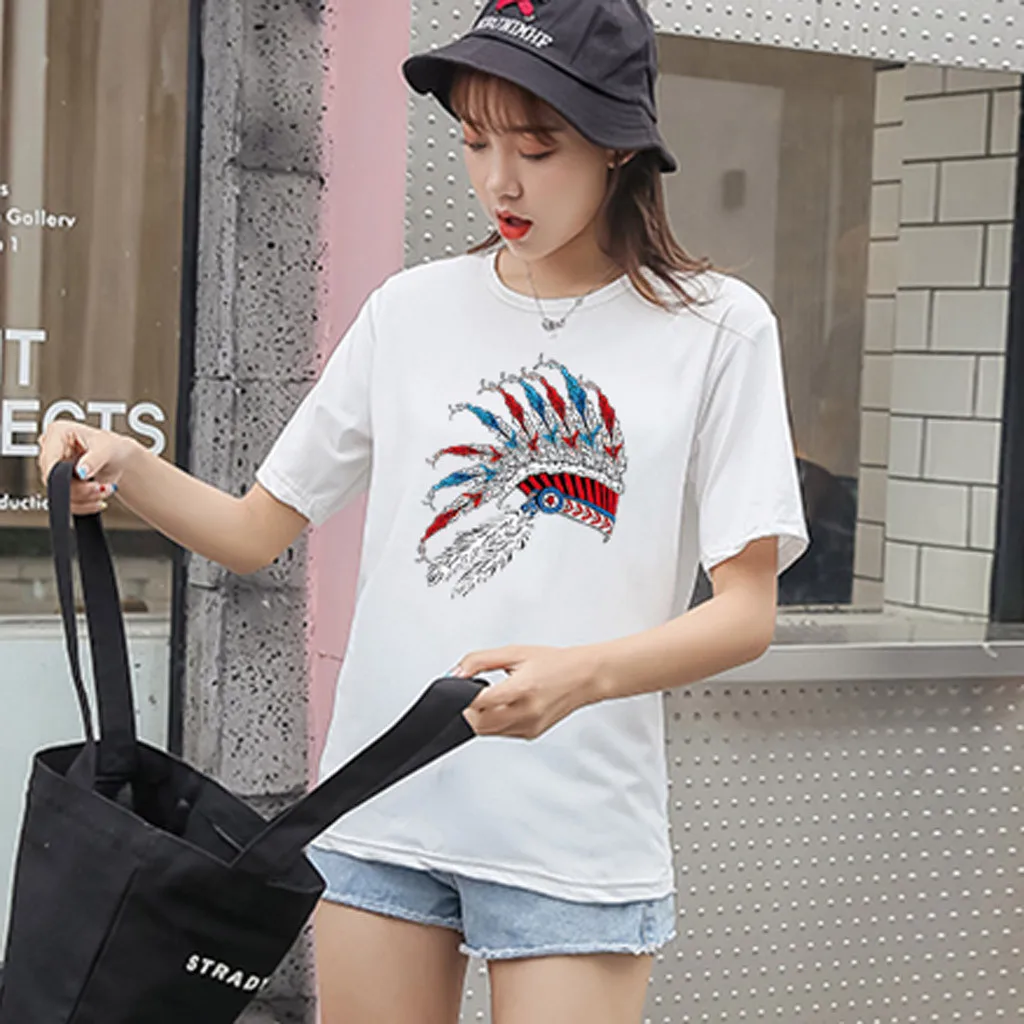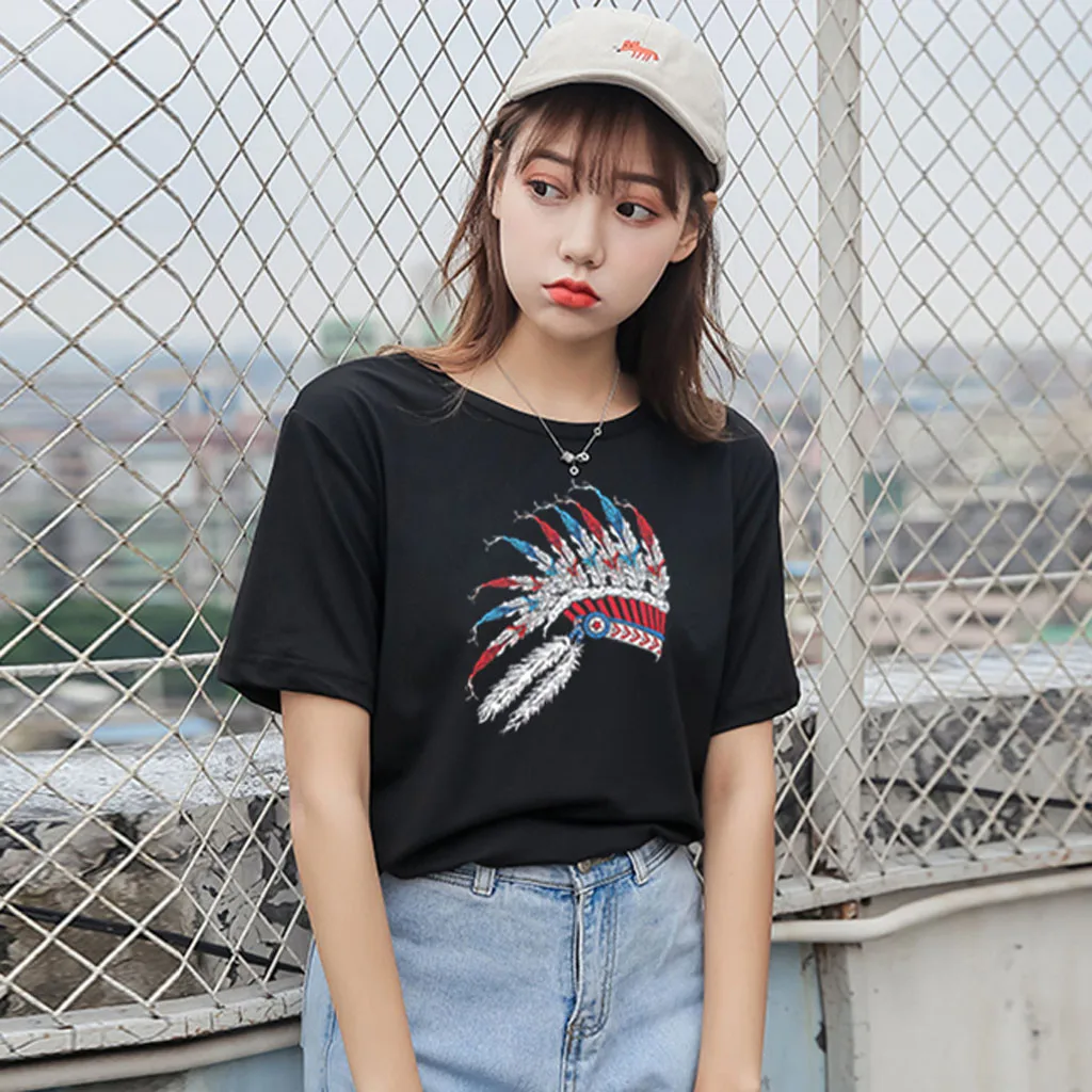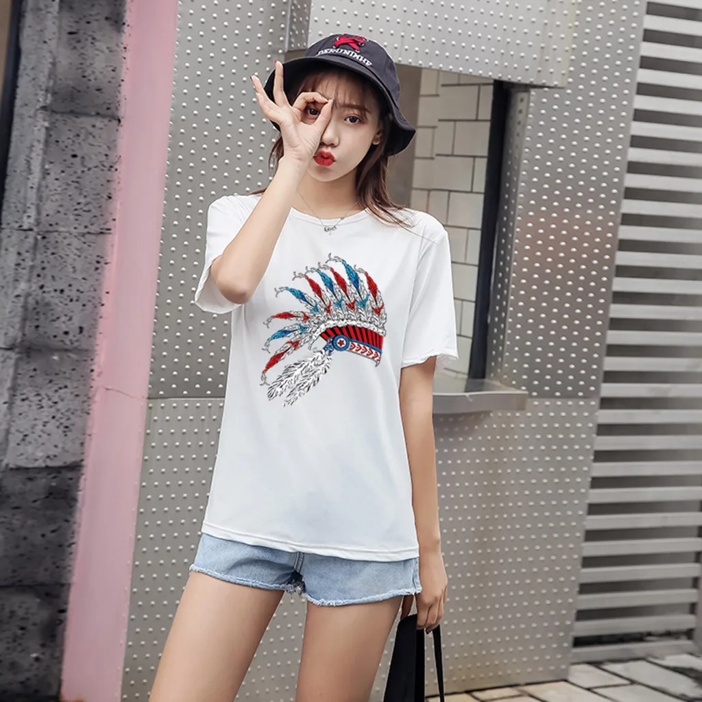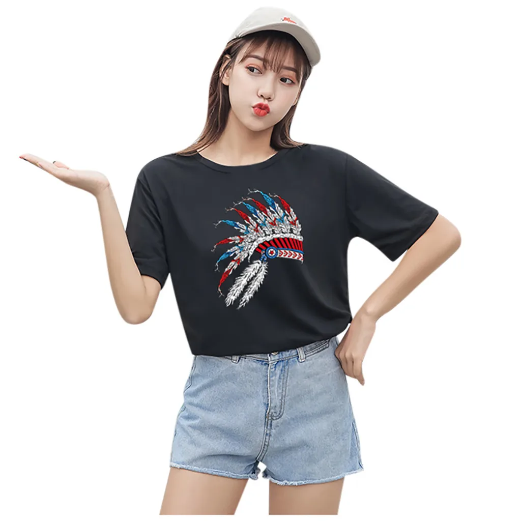 Особенности: Повседневная Блузка с коротким рукавом, круглым вырезом, футболка, женские топы, осень и весна.