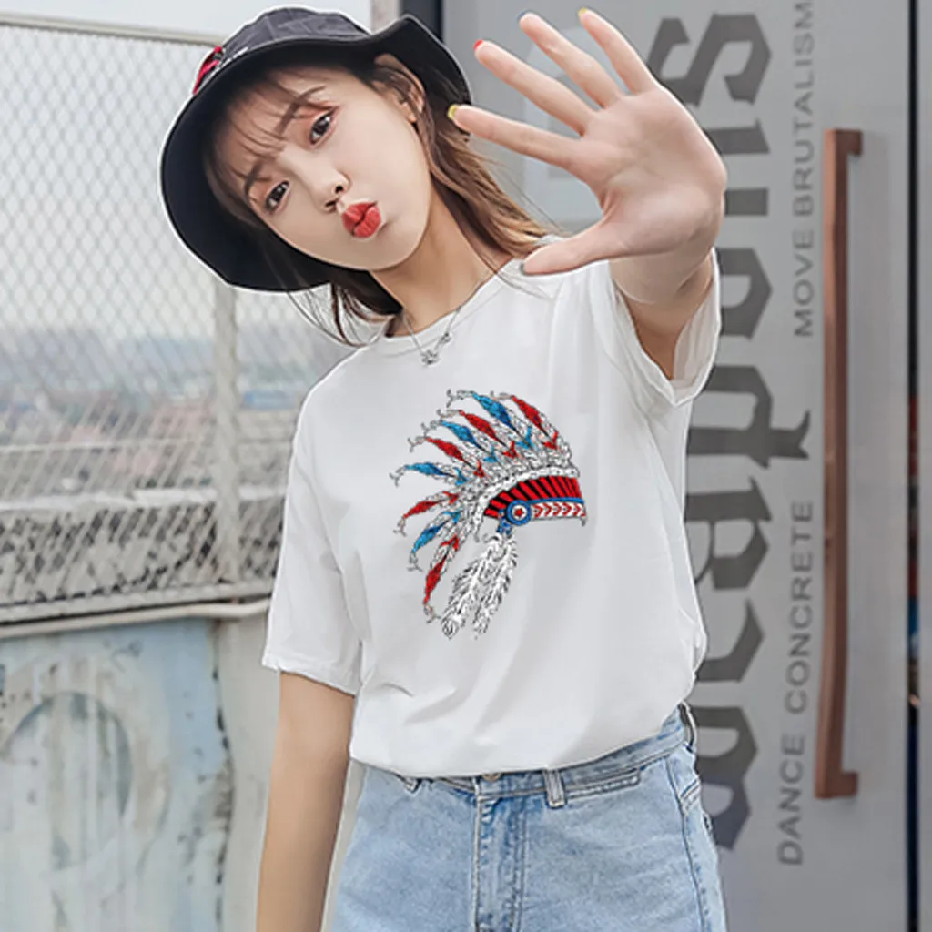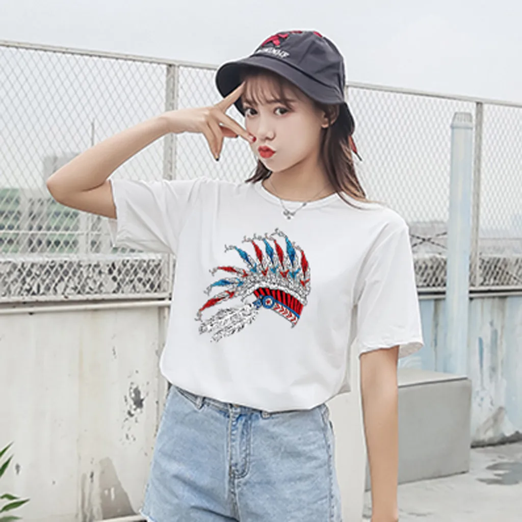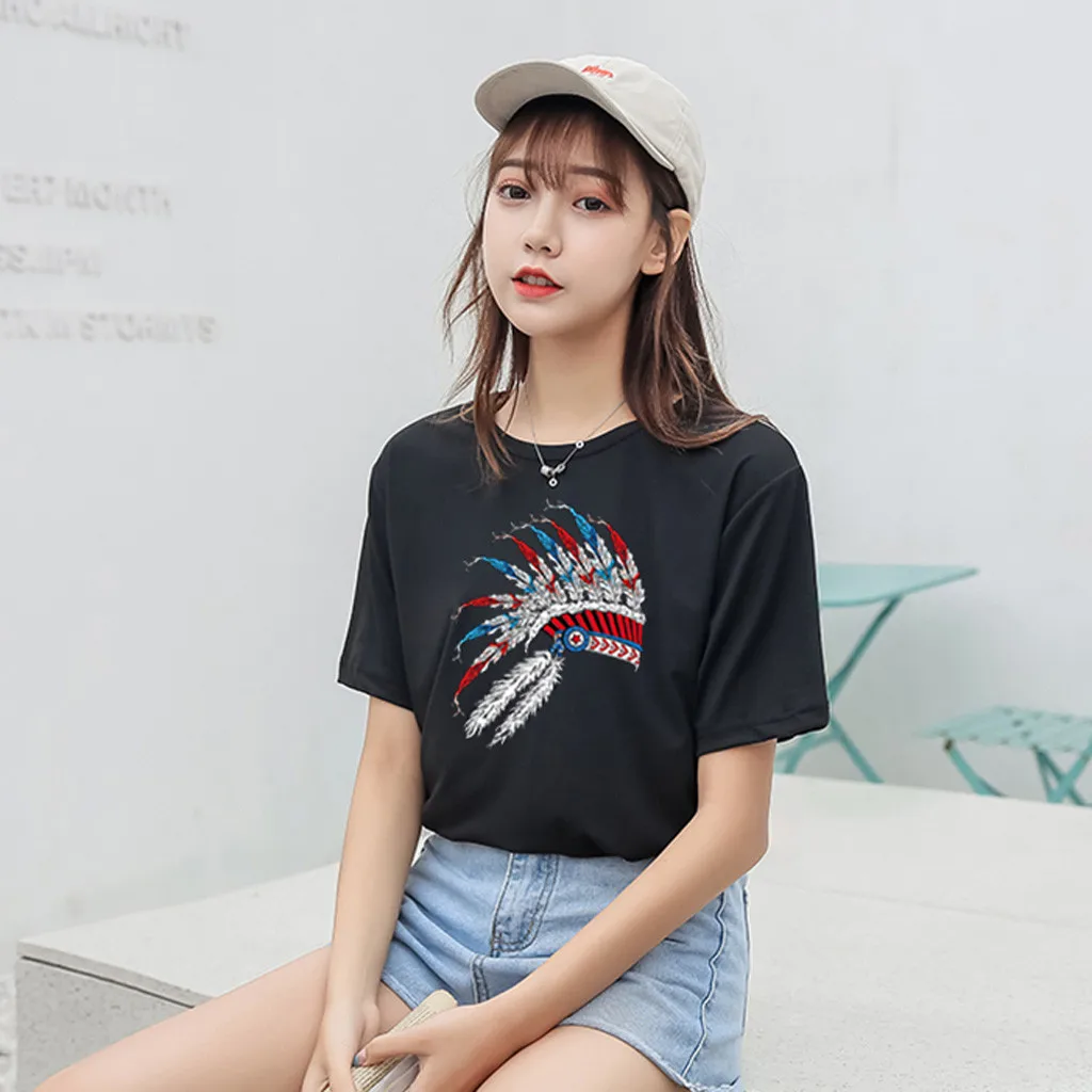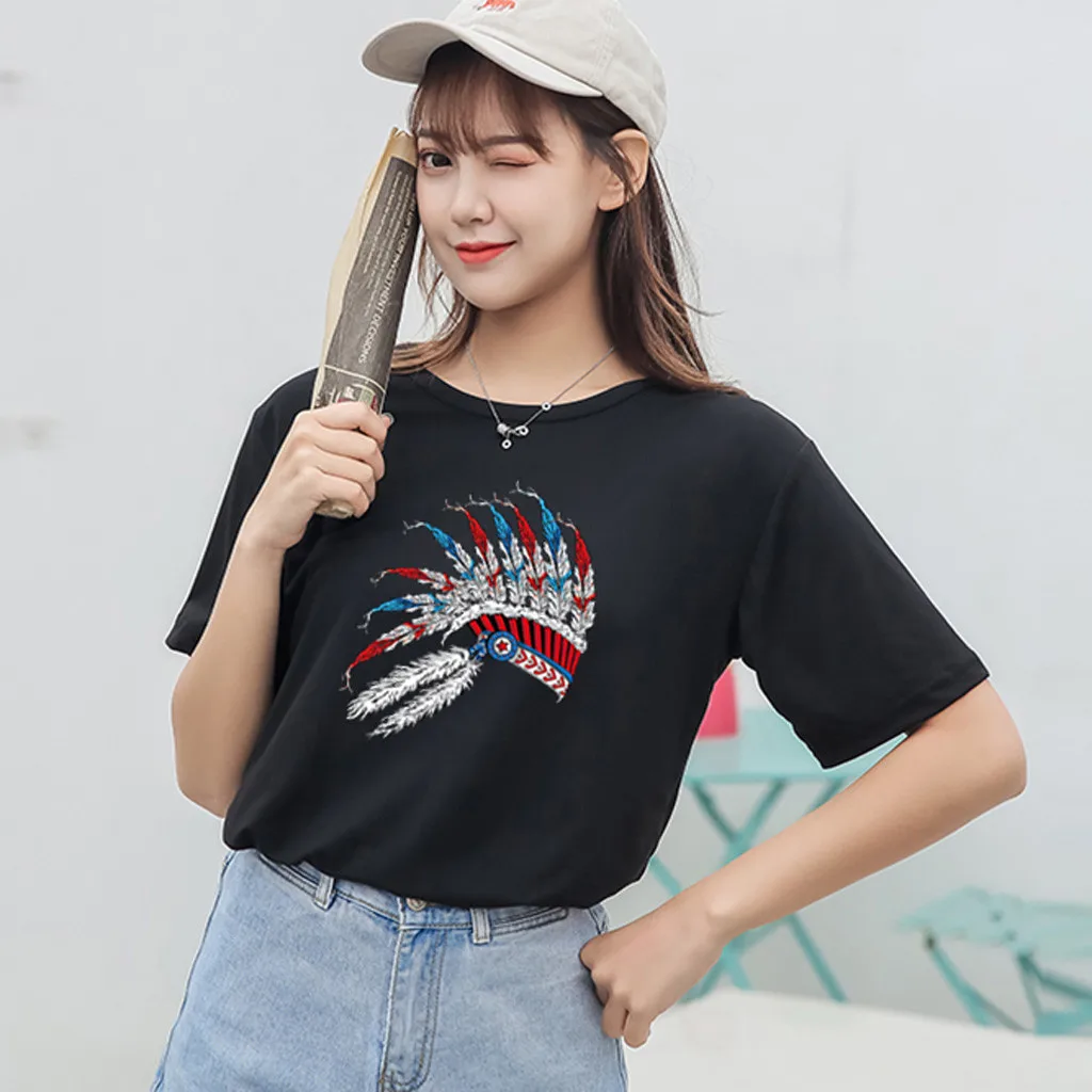 Особенности: Повседневная Блузка с коротким рукавом, круглым вырезом, футболка, женские топы, осень и весна.