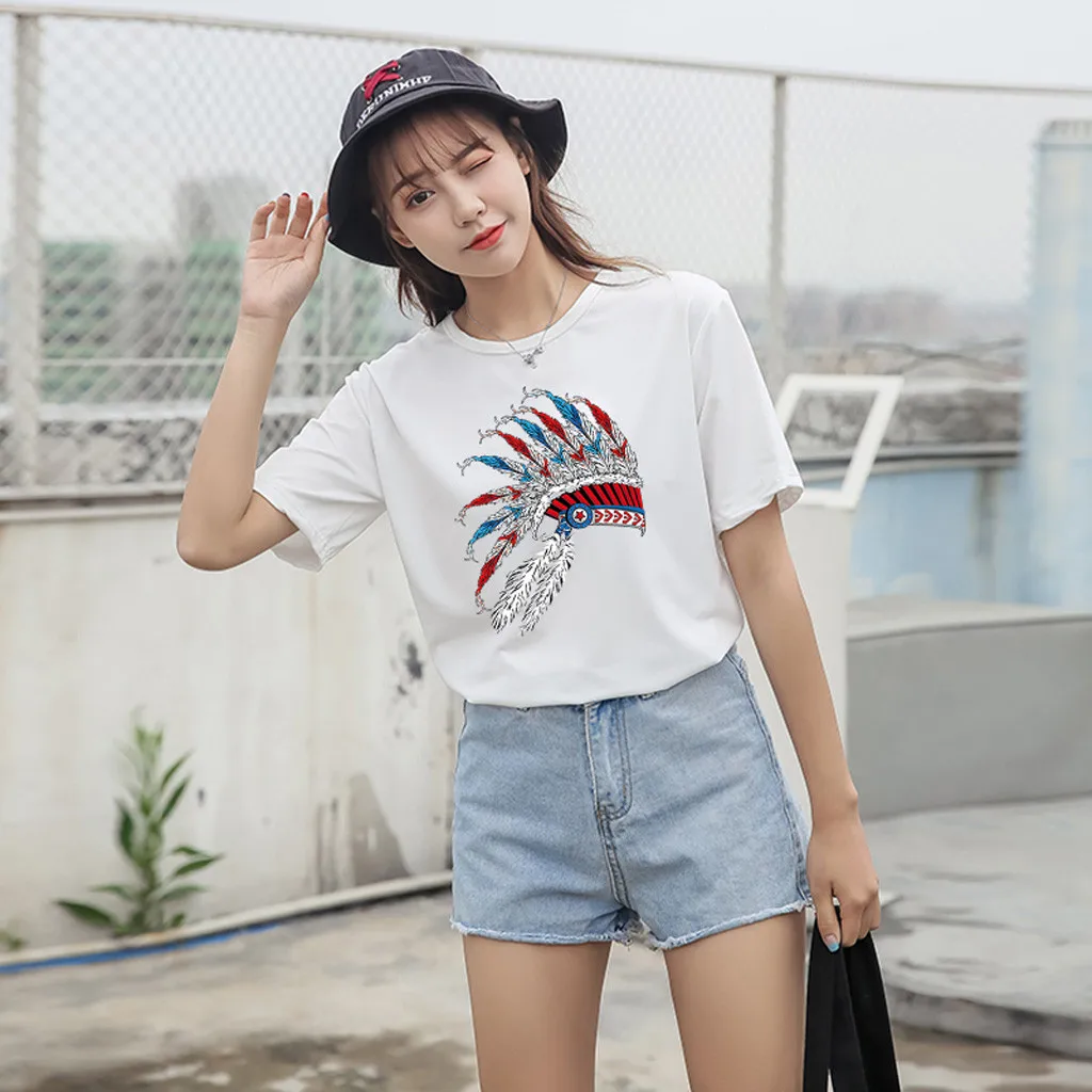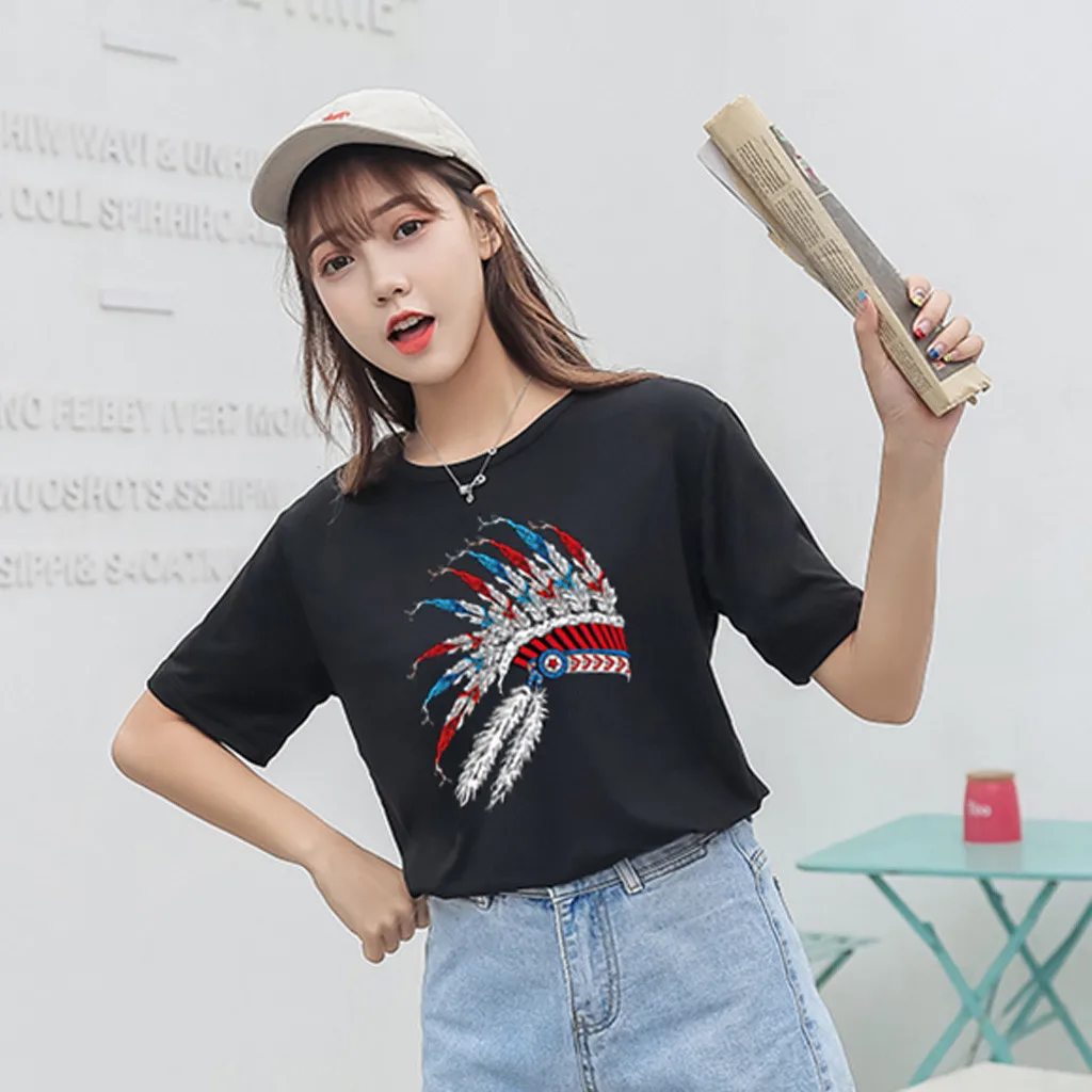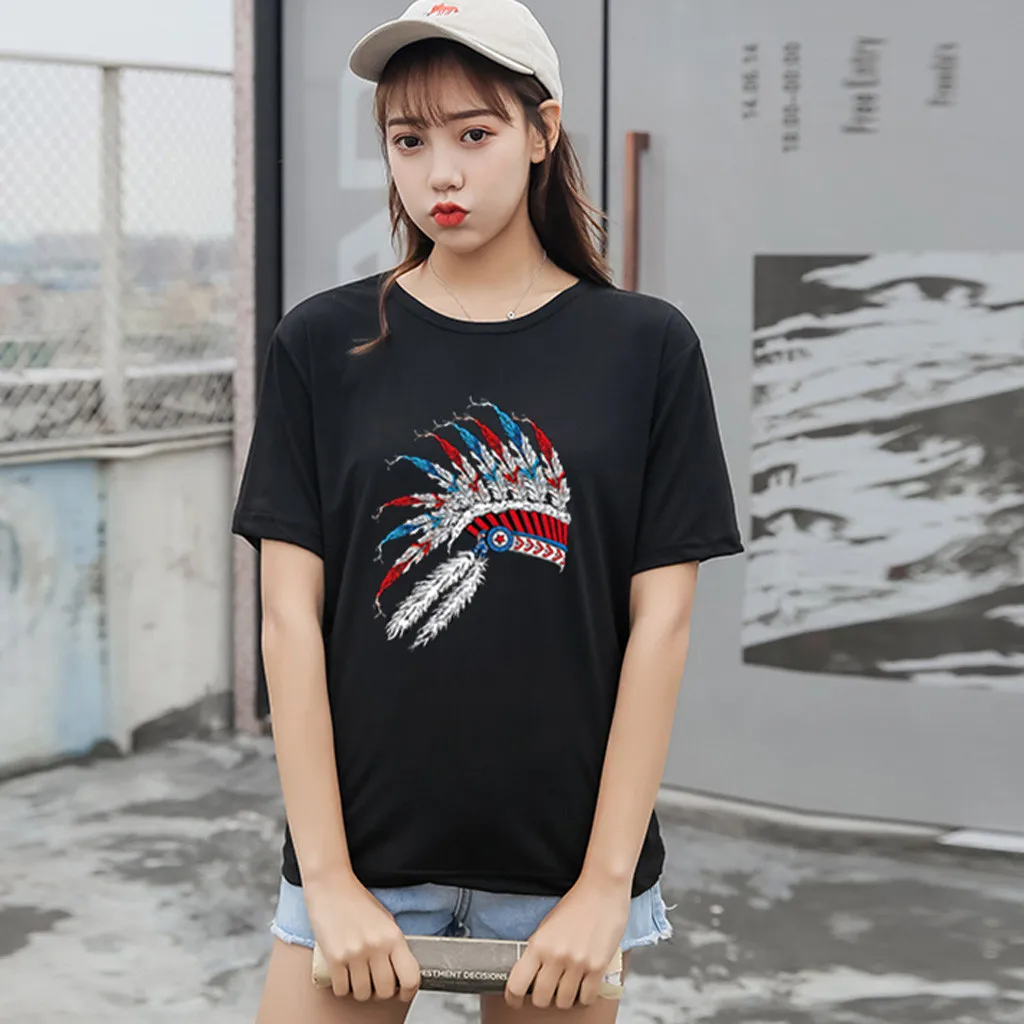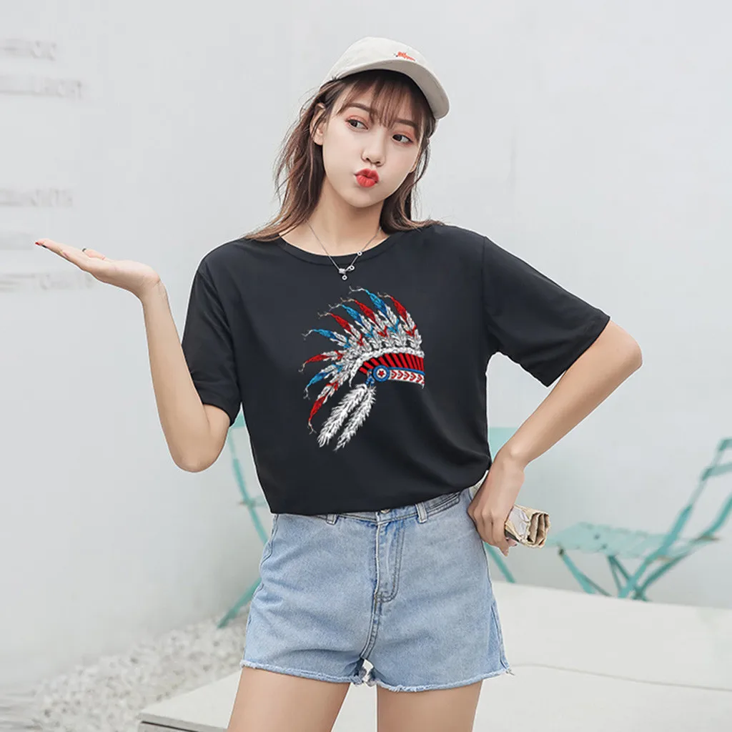 Особенности: Повседневная Блузка с коротким рукавом, круглым вырезом, футболка, женские топы, осень и весна.