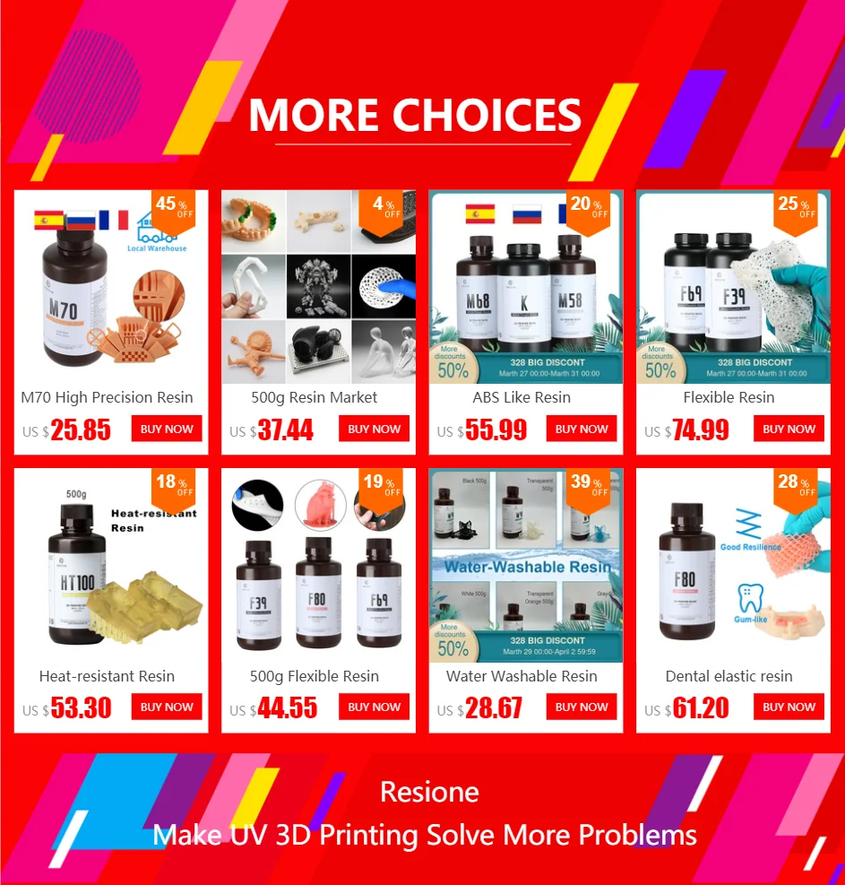 ① Смолы C01 и C02 подходят только для литья в стоматологической области, такие как зубные короны/мосты/съемные частичные рамки, но не подходят для ювелирных полей. ② C01 используется для 3D-принтера LCD (слабый светильник), C02 используется для DLP 3D принтера (МОЩНЫЙ СВЕТИЛЬНИК).