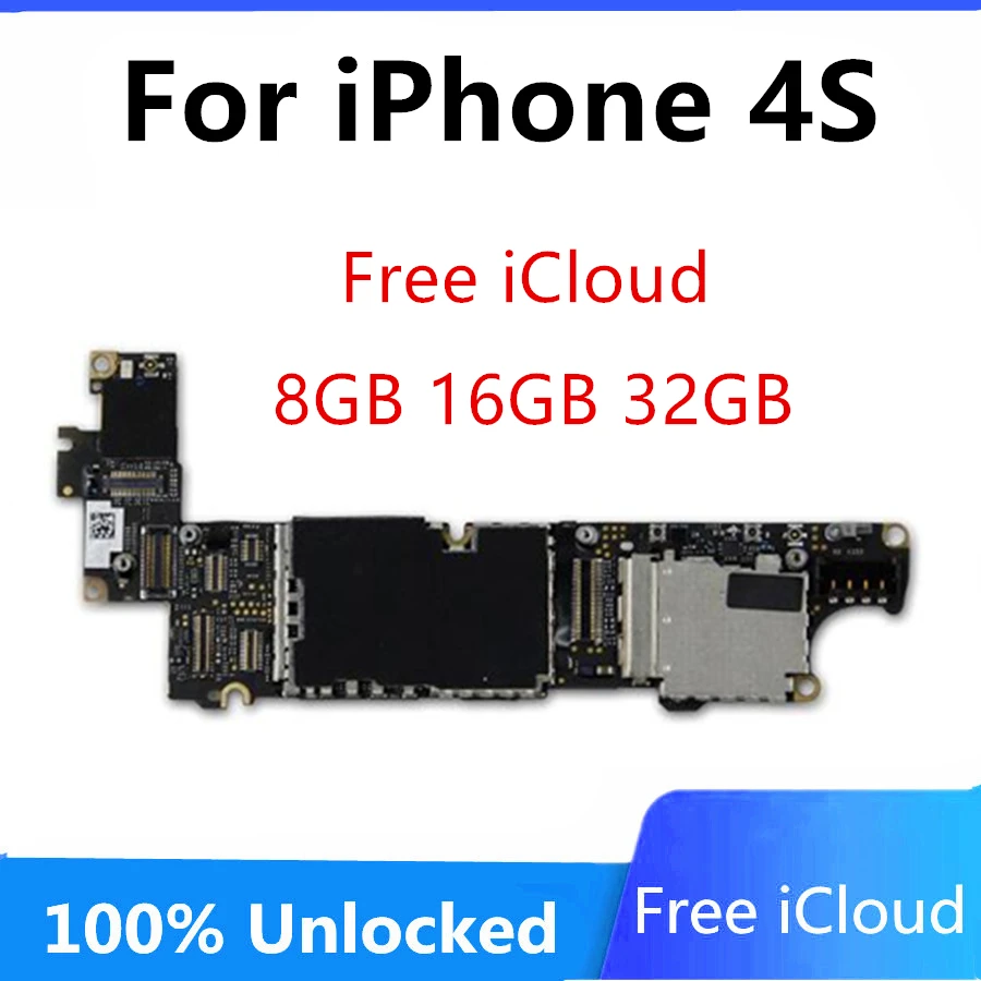 100% оригинальная разблокированная материнская плата для iPhone 4S с системой IOS, Бесплатная материнская плата iCloud 8 ГБ 16 ГБ 32 ГБ