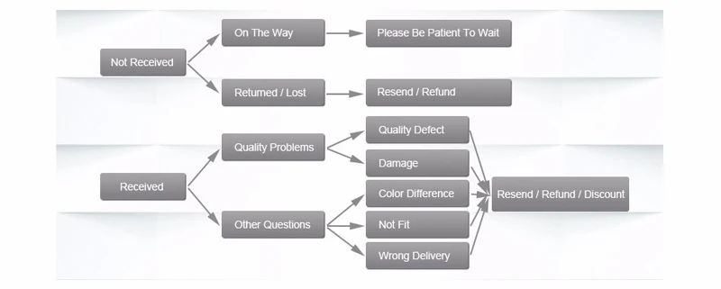 - Проблема качестваМы тщательно проверим каждый товар перед отправкой, однако некоторые из них могут быть повреждены во время транспортировки. Если вы обнаружите какие-либо проблемы с качеством, пожалуйста, сделайте фотографию и свяжитесь с нами через 15 дней после получения, мы повторно отправим вам новый продукт или вернем вам оплату.