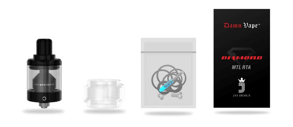 1 x Алмазный MTL RTA 1 х пузырчатое стекло 1 х сумка для запасных частей 1 x Руководство пользователя