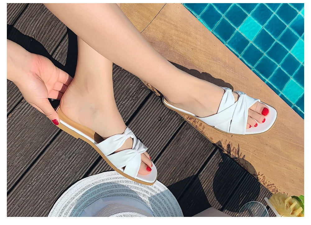 RJN/летние женские шлепанцы; Высококачественная удобная однотонная обувь с украшением в виде бабочки; Модные Нескользящие тапочки; RO84