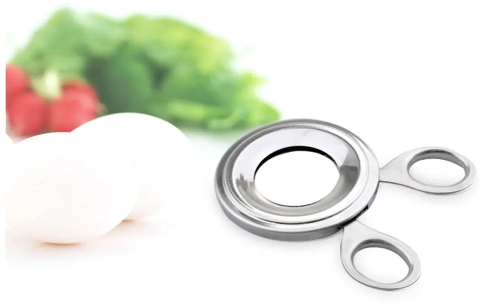 Легко сделать круглое отверстие для яичной скорлупы-аккуратно поверните кольцо ножниц и поднимите вверх, чтобы двигаться, вы можете отделить верхнюю часть яйца, которая затем легко удаляется вручную.