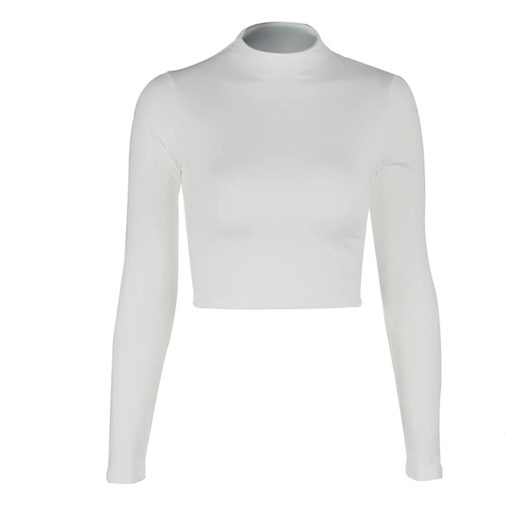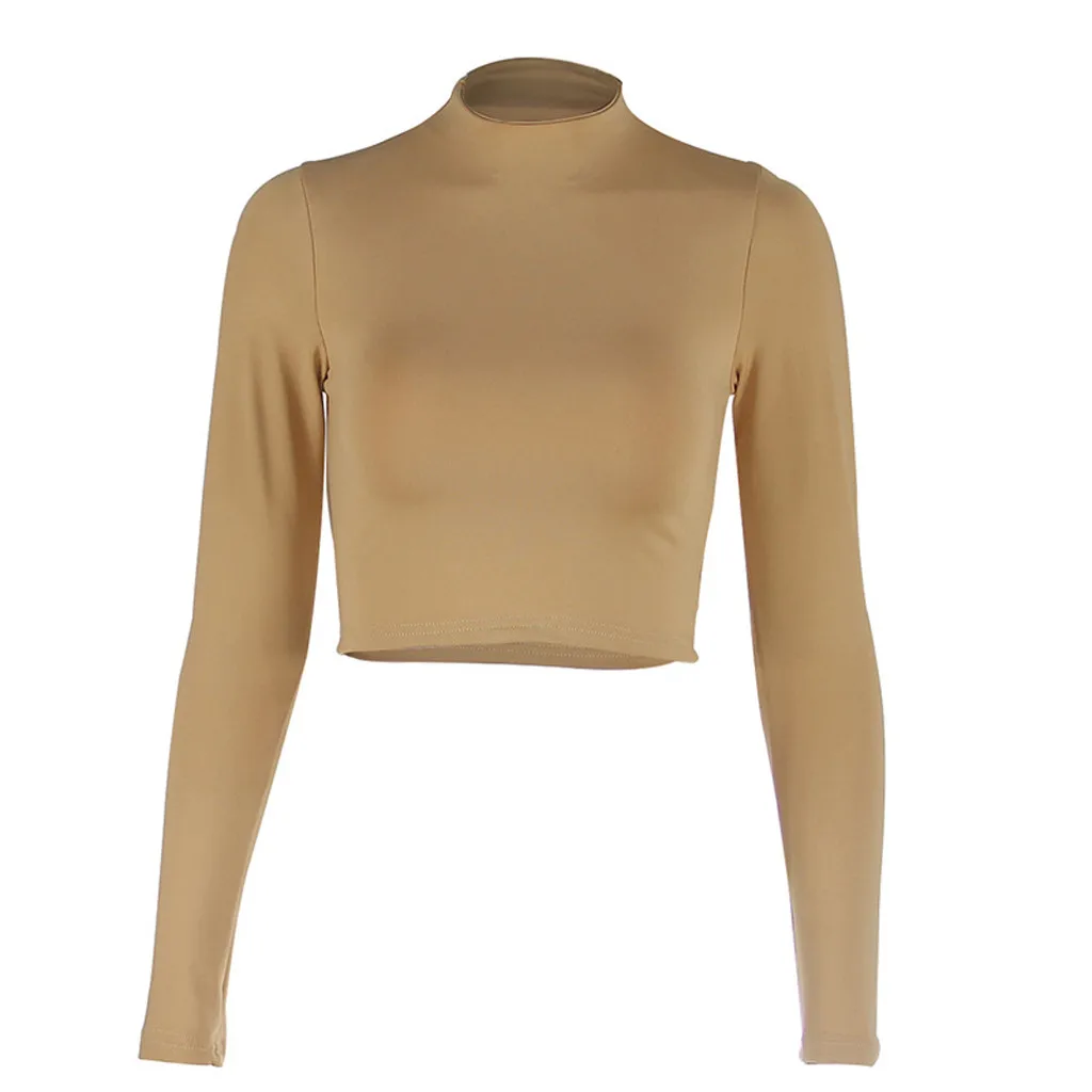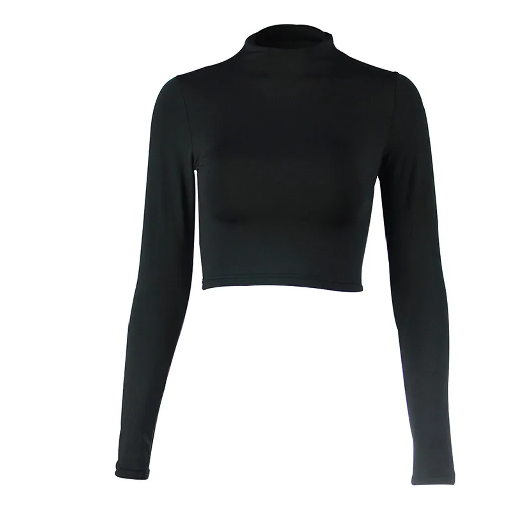 Женская экспозиция пупка с длинным рукавом o-образным вырезом Однотонная рубашка Топы Блузка
