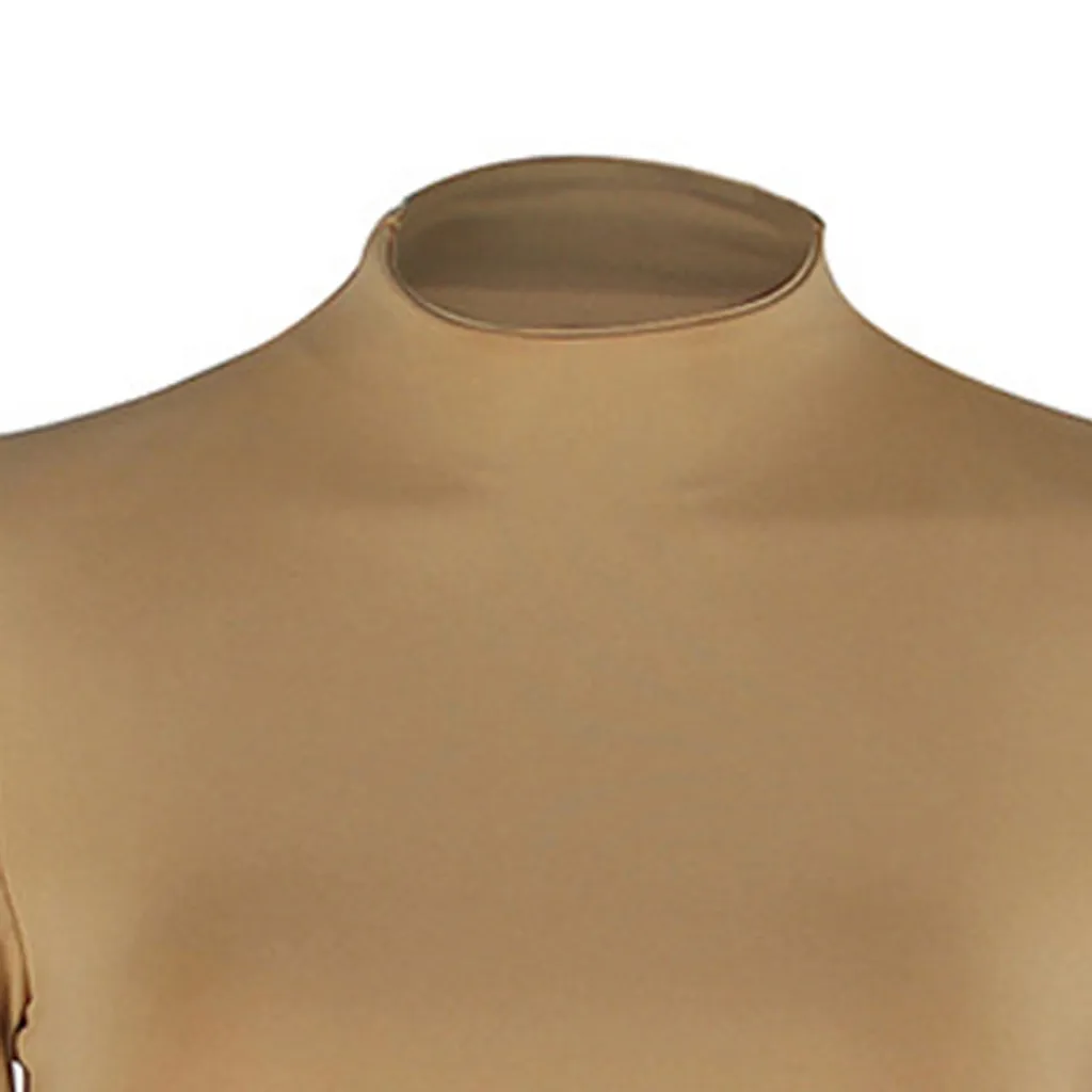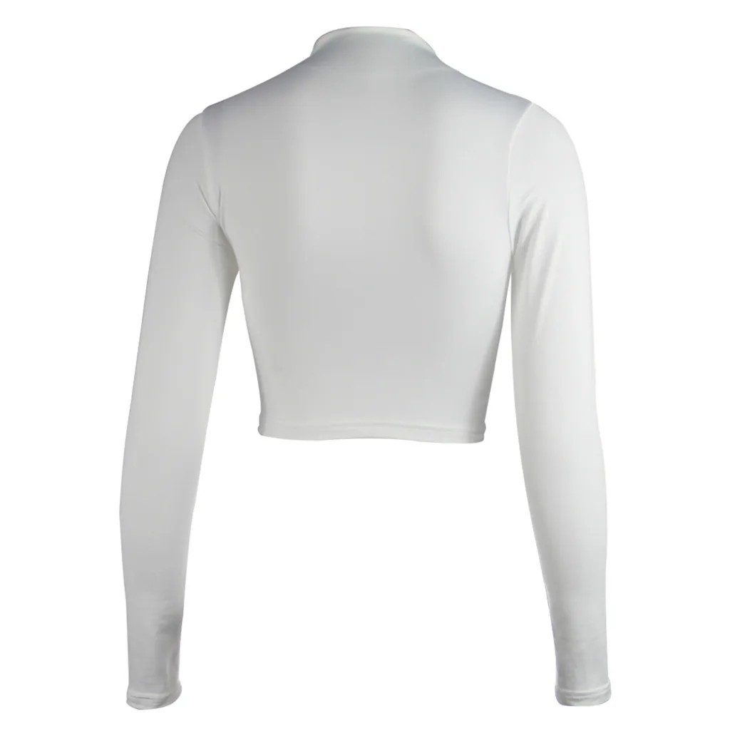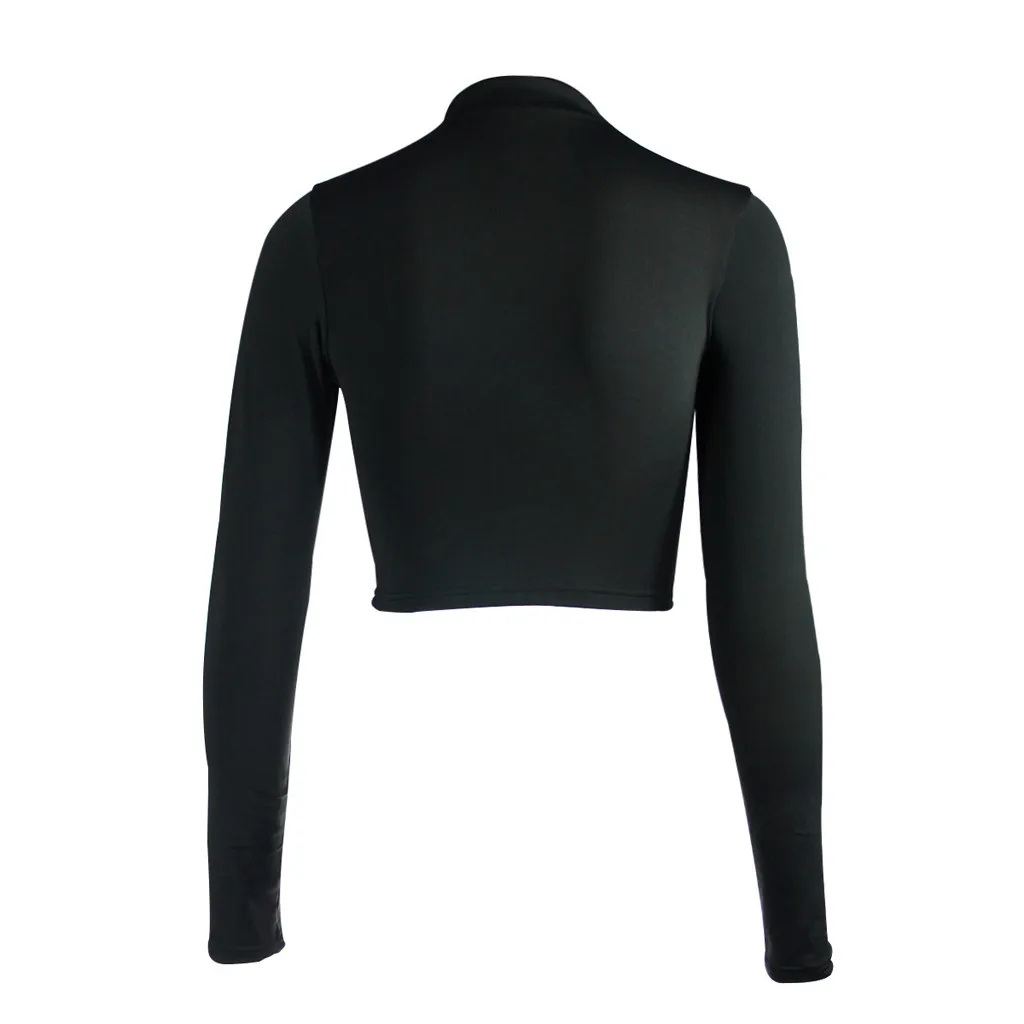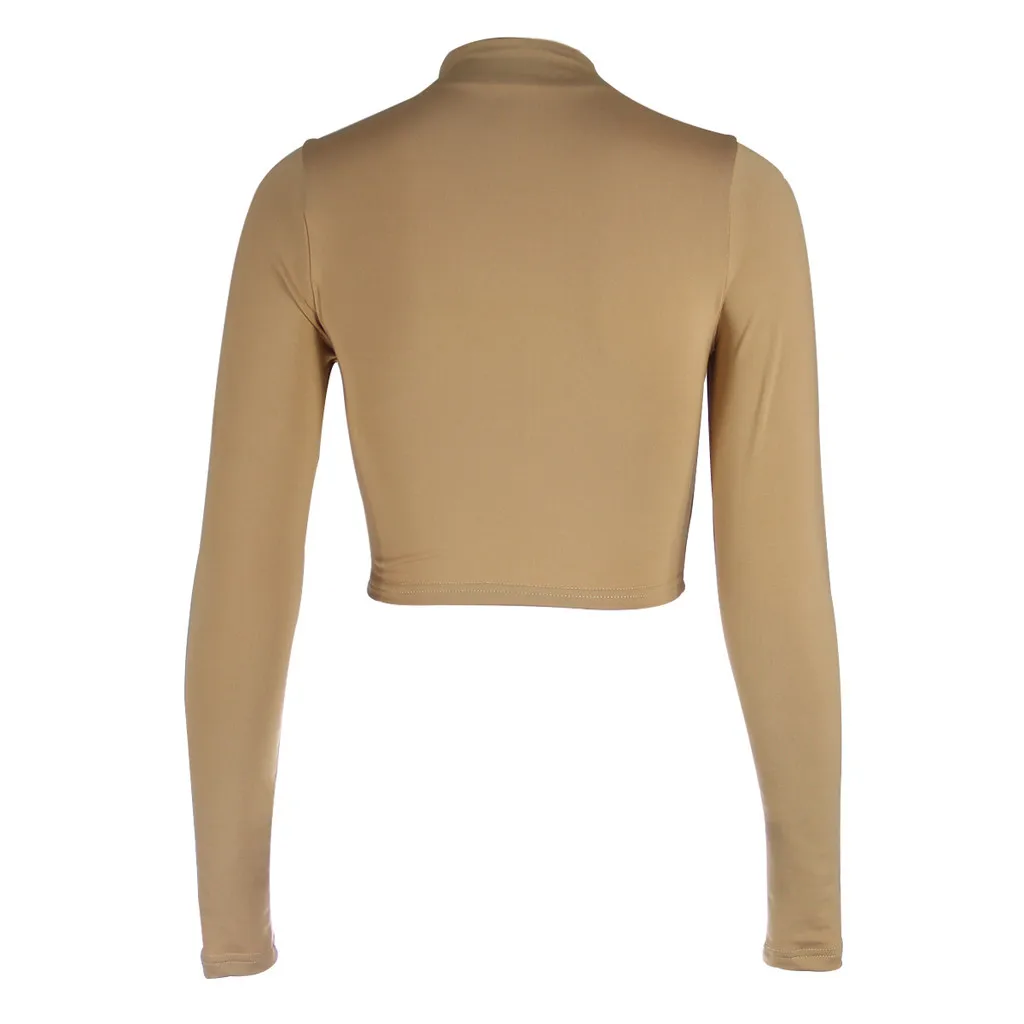 Женская экспозиция пупка с длинным рукавом o-образным вырезом Однотонная рубашка Топы Блузка